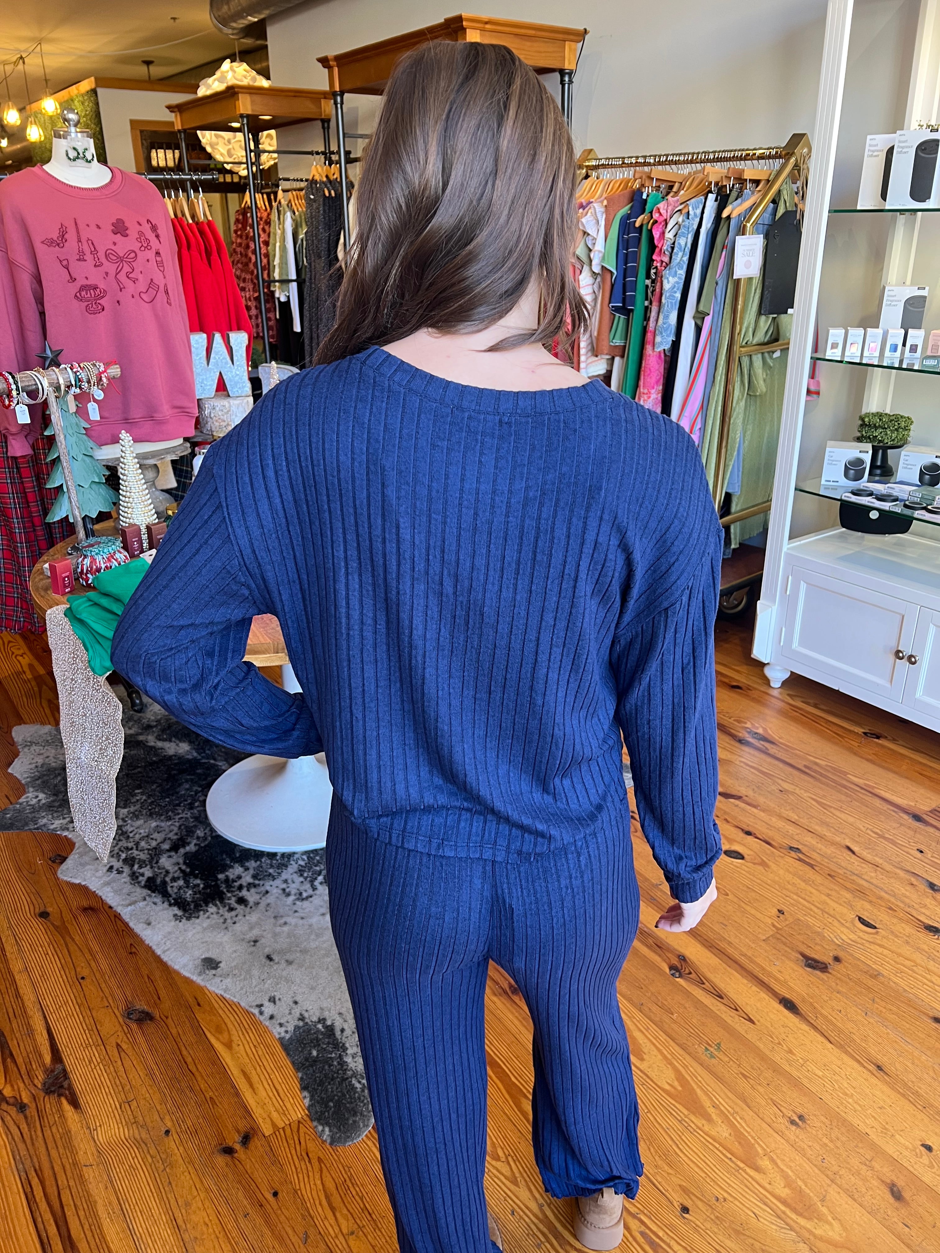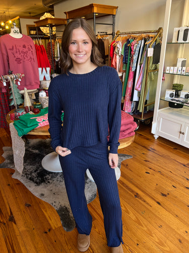 Crafted in silky rib knit, this long sleeve top delivers a smooth, body-skimming fit. Designed for easy layering, it pairs perfectly with matching bottoms or your favorite lounge pants.