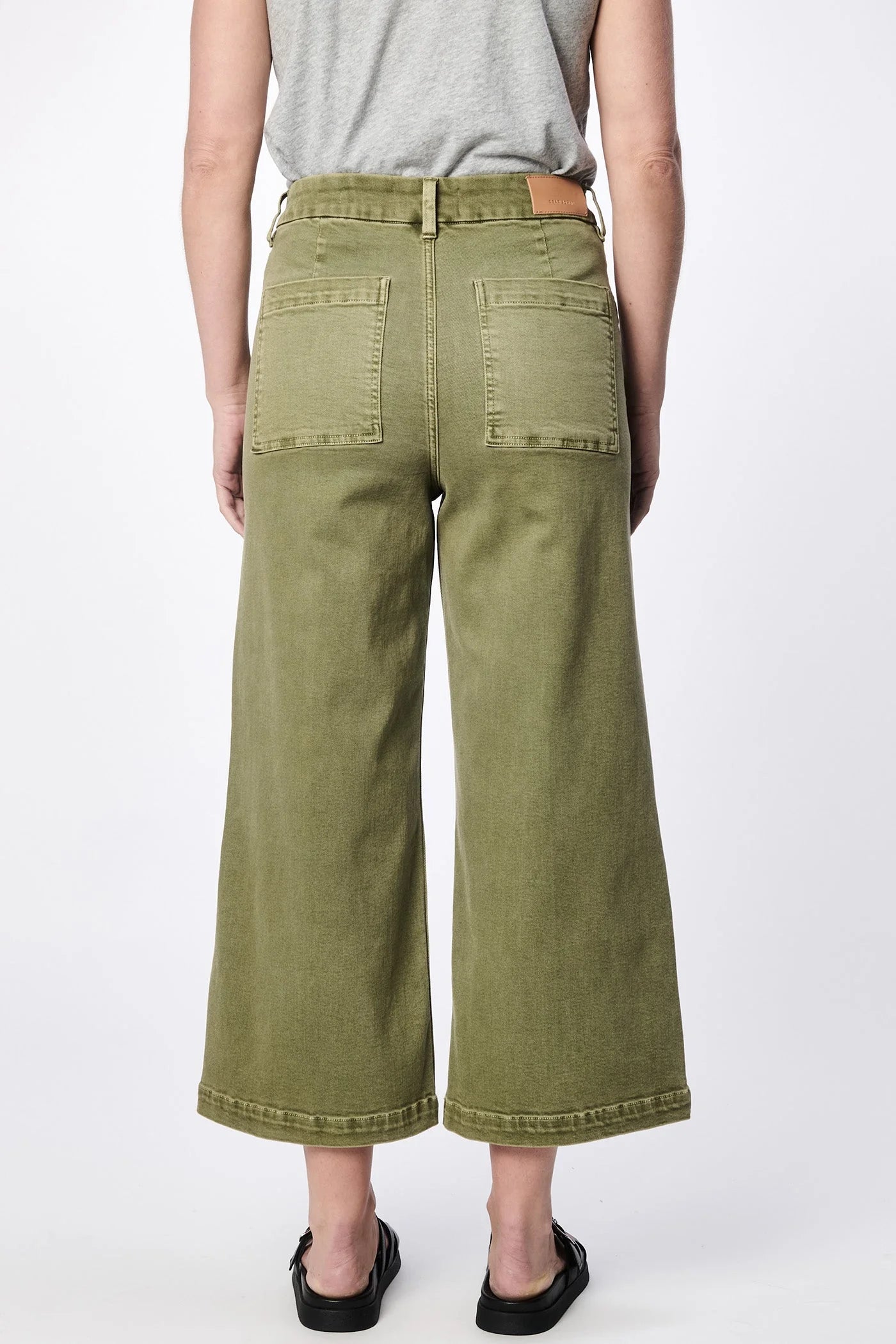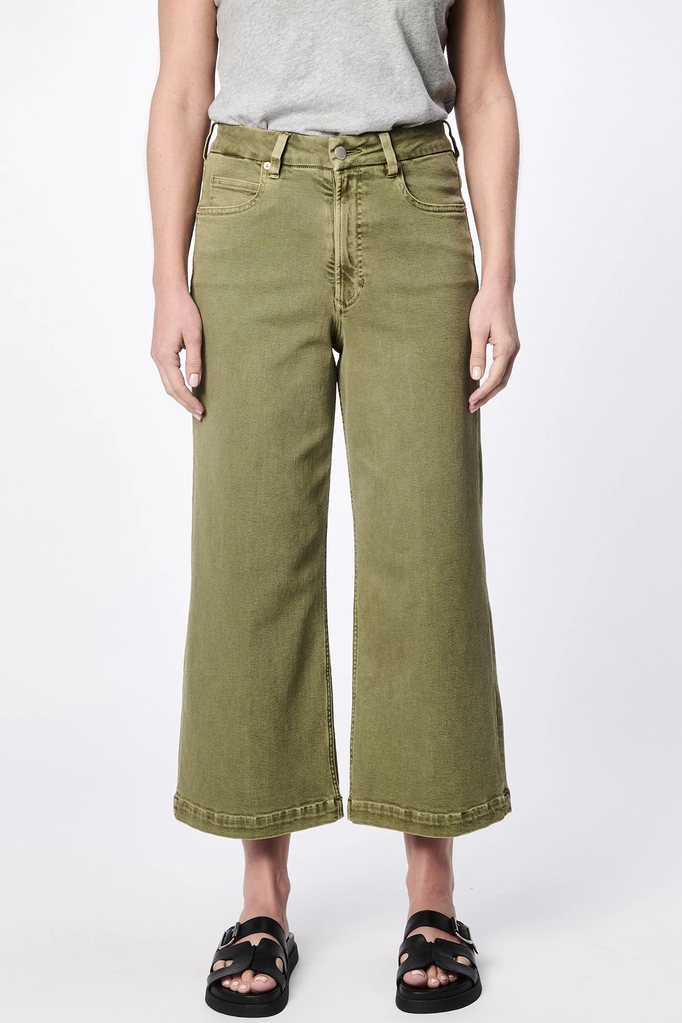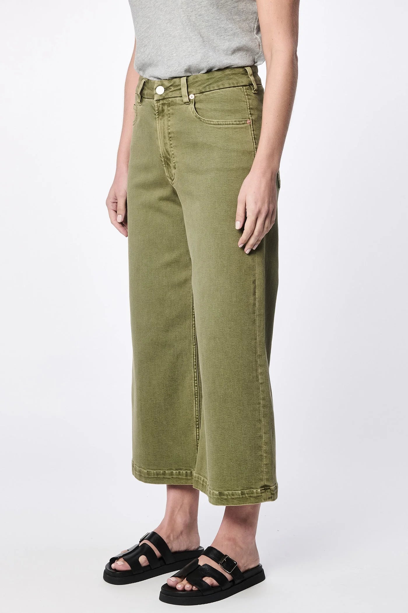 The Audrey wide leg jeans in color denim, a high-rise silhouette meticulously crafted for the fashion-forward contemporary.