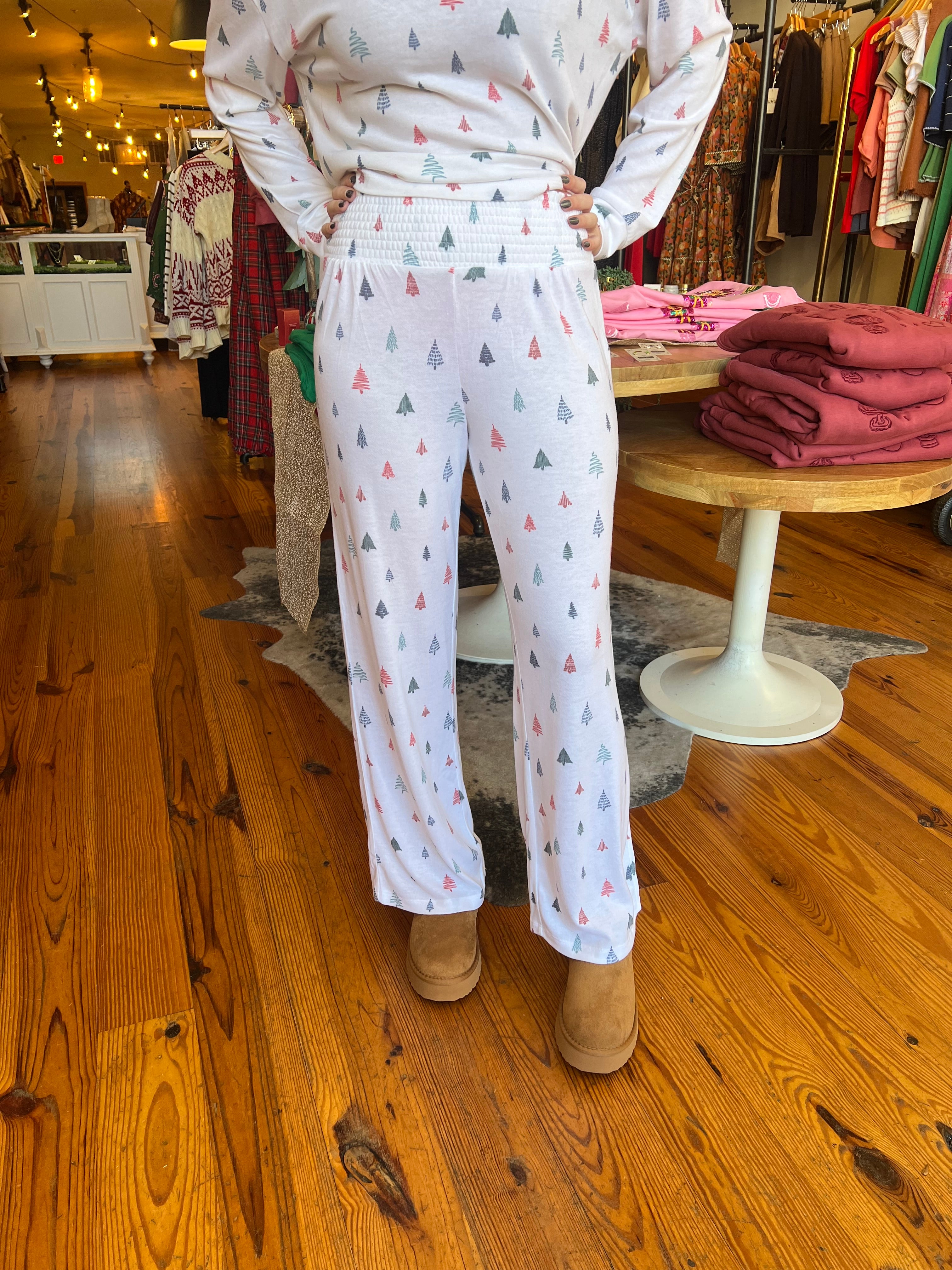 Soft, festive, and flattering. Meet the pant that brings cozy cheer to every moment. A cozy update to our best-selling Dawn Pant, this holiday-ready style is made from our brushed sweater knit for the softest feel. Designed with a festive tree print and flattering fit-and-flare silhouette, it features a smocked waistband that makes it perfect for lounging or gifting.