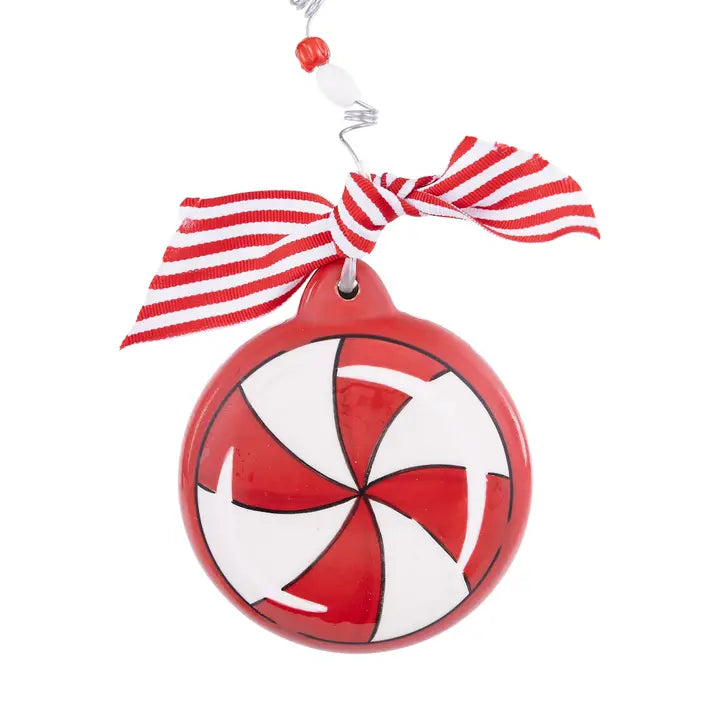 Deck the halls with sweetness using our Peppermint Puff Ornament. Hand-painted with whimsical peppermint stripes, this delightful ornament adds a dash of festive cheer to your Christmas tree. Whether hung on the tree, displayed in a wreath, or adorning a gift package, its charming design brings a touch of classic charm to any setting. Embrace the spirit of the season and let the peppermint joy shine bright with this delightful addition to your holiday decor!