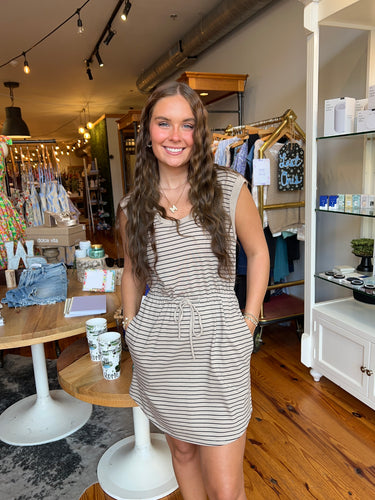 This is the dress that makes everyday feel a little more fun. Crafted from soft cotton jersey with a laid-back striped pattern, it features a scoop neckline, side pockets, and a drawcord waist that lets you shape it to your liking.