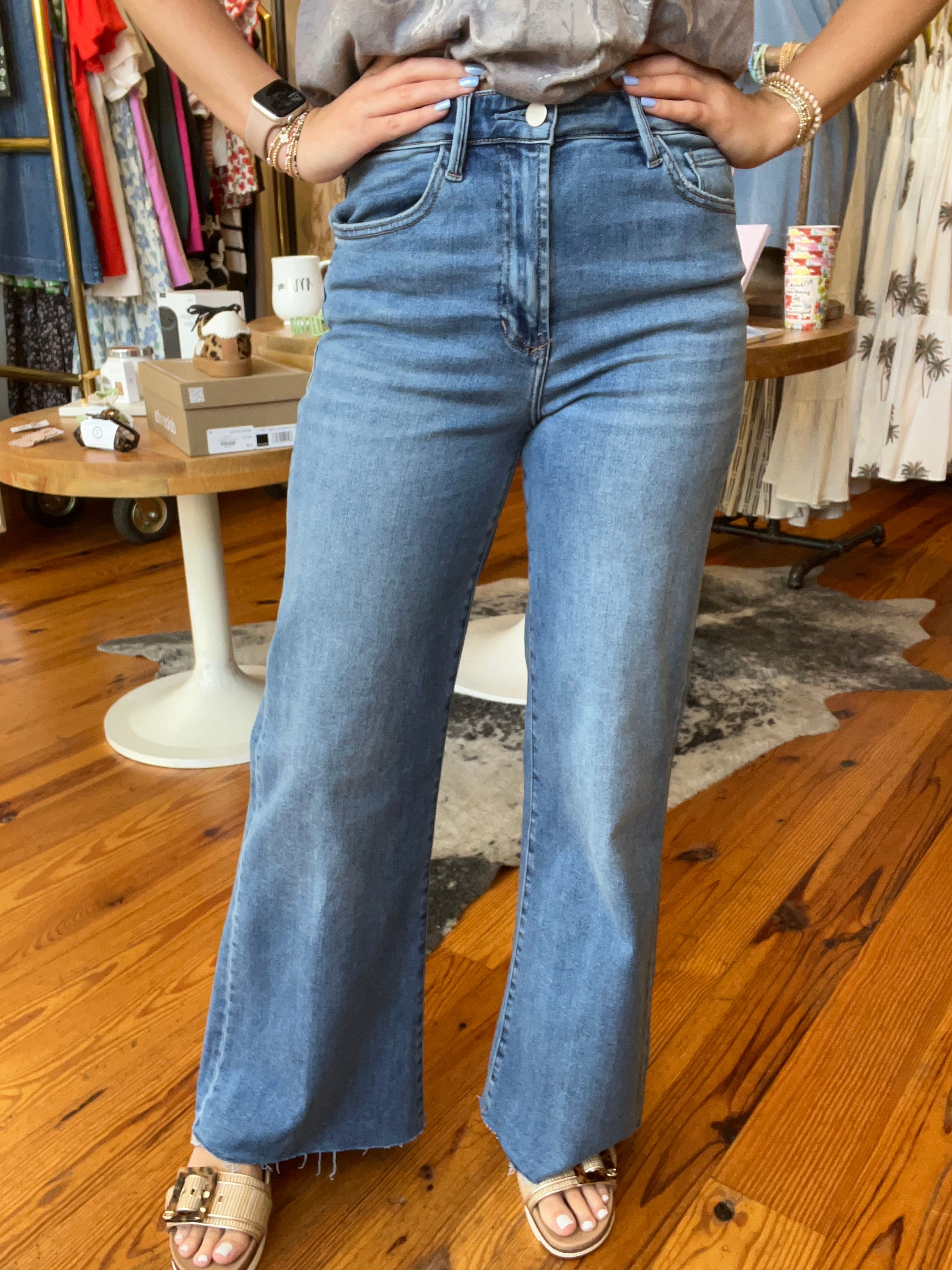 Discover the perfect blend of style and comfort with our Fiona Pants, featuring a high-rise design and full cut-off hem for a relaxed yet modern look.