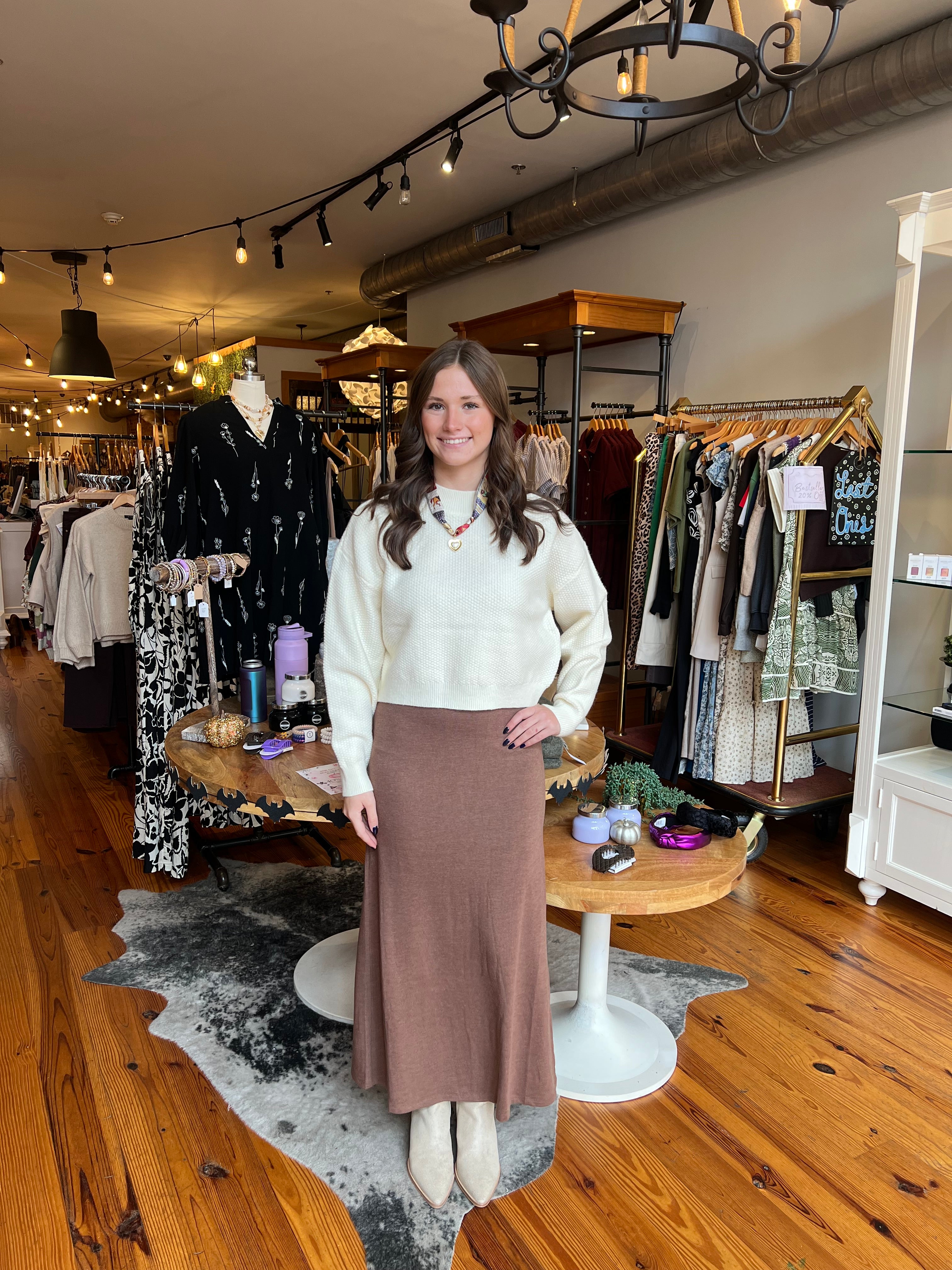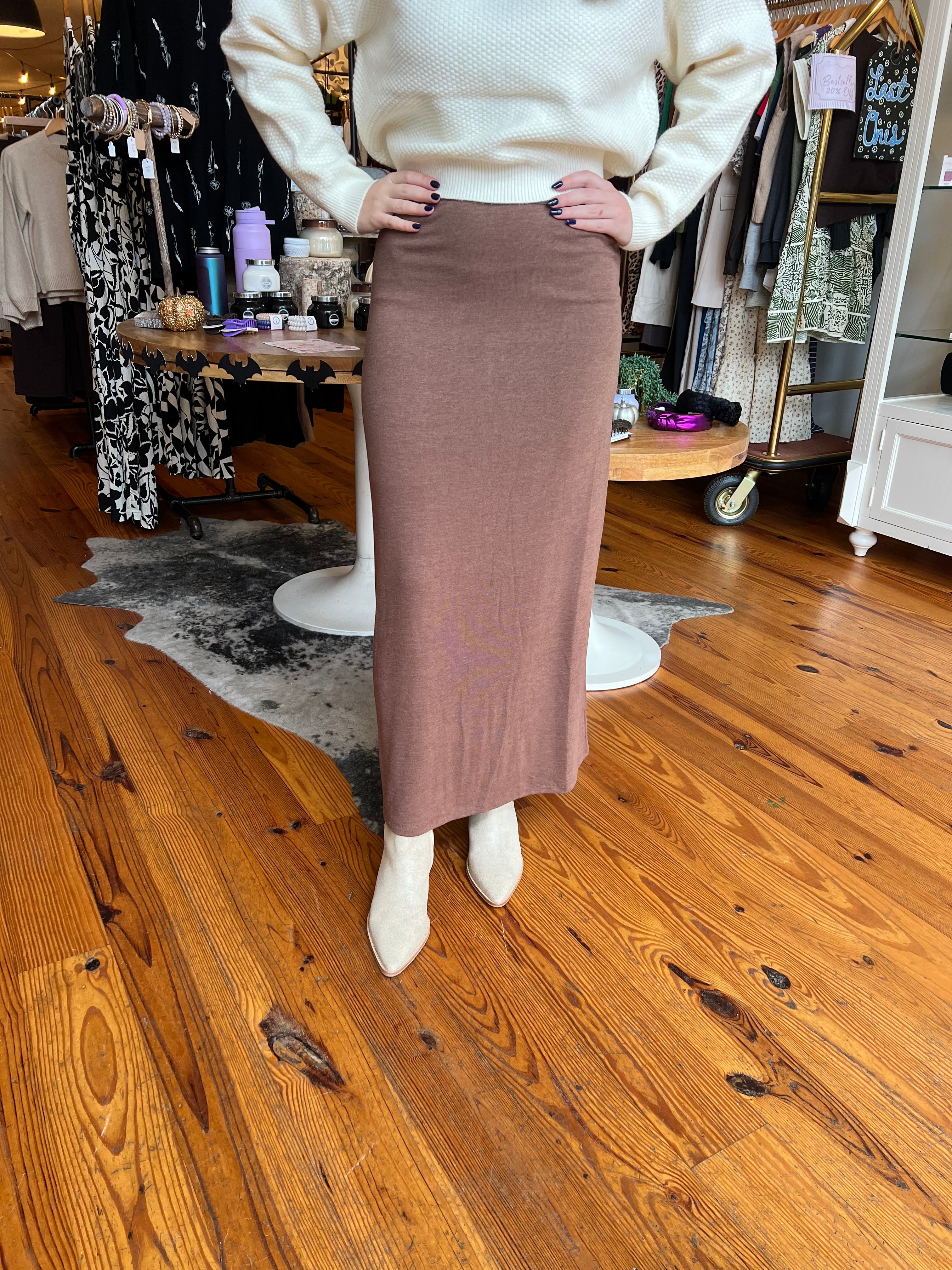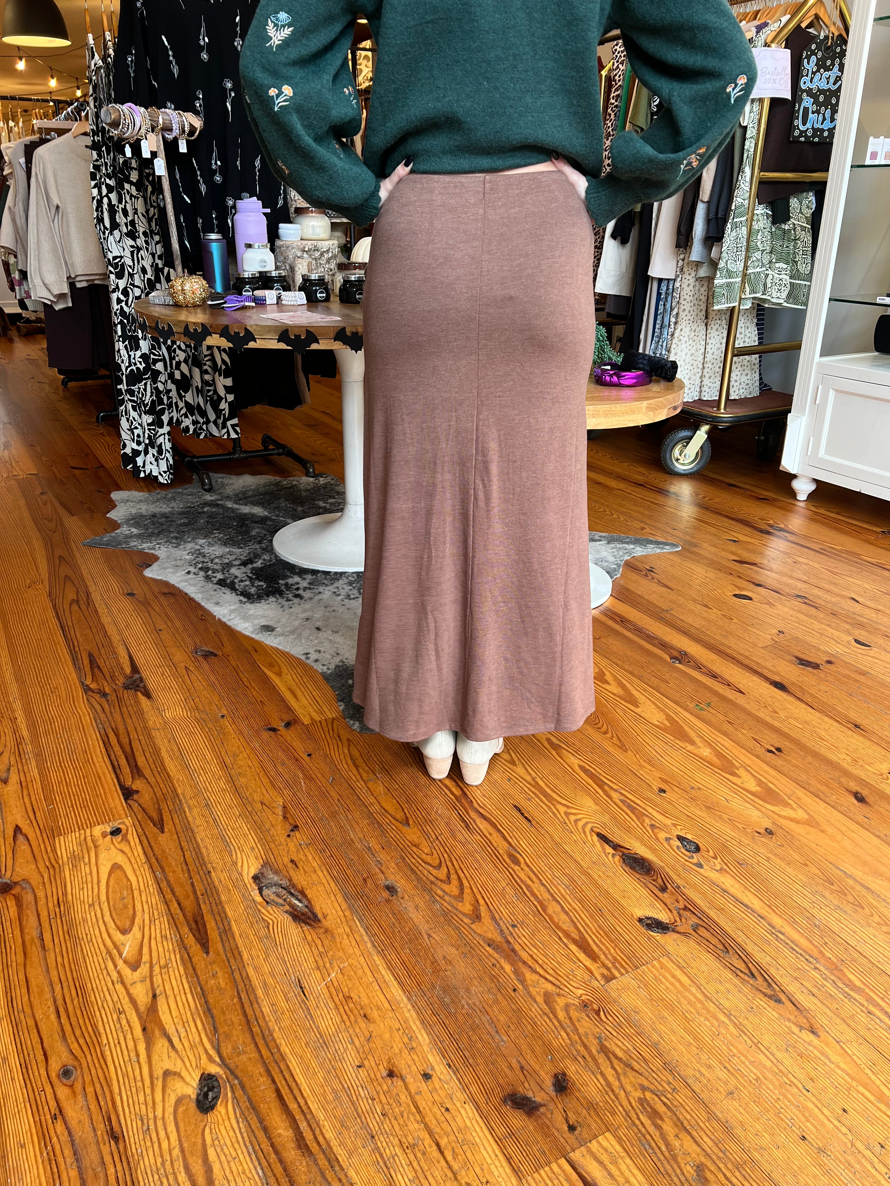 Your new everyday favorite. Designed in our soft brushed jersey with a flowy silhouette and easy pull-on waistband, this maxi skirt moves effortlessly from early hours to evening outings.