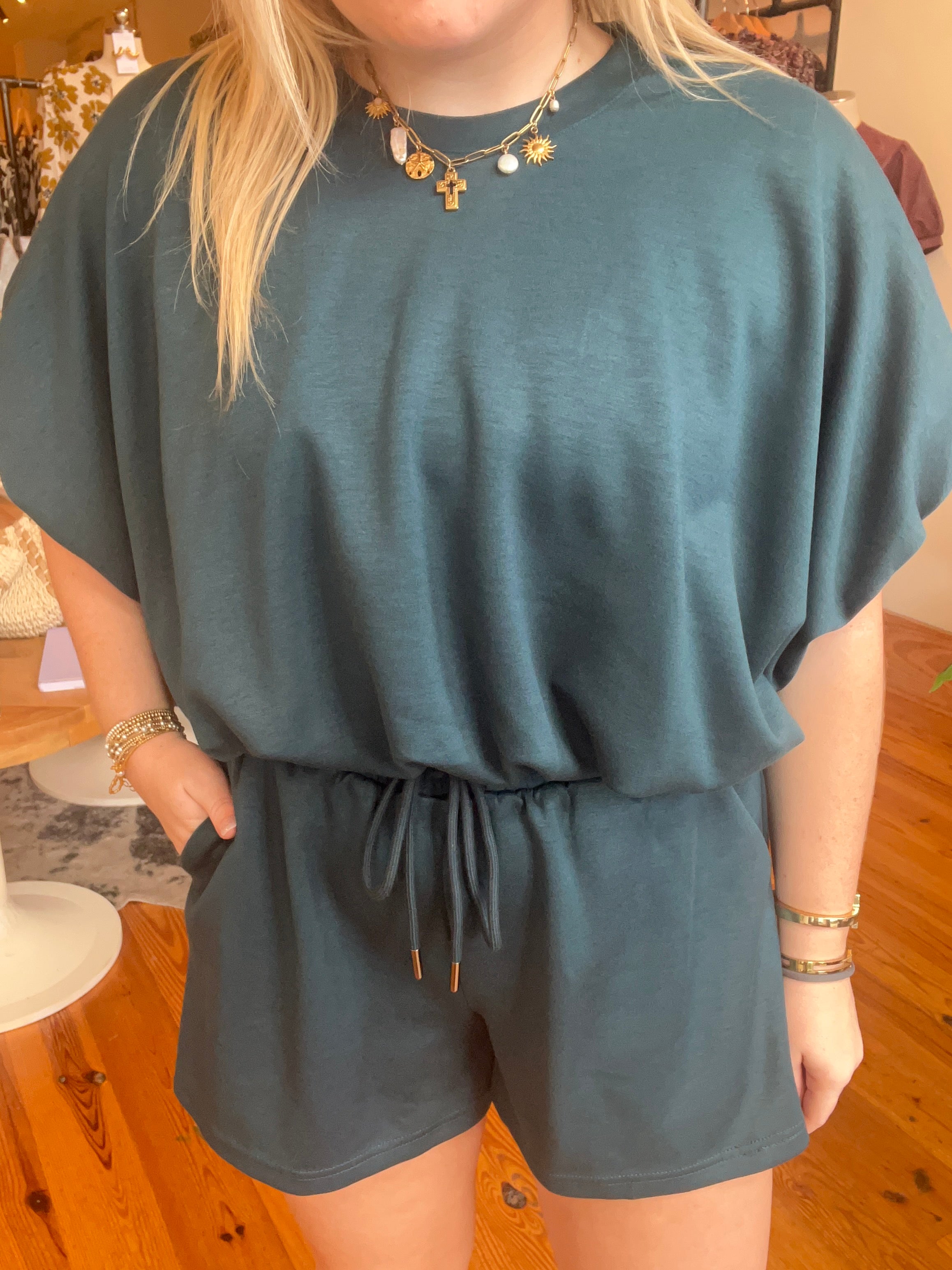 Solid high waisted jersey knit pull-on shorts. Drawstring adjustable elasticated waistband. Pockets at sides. Unlined. Knit. Non-sheer. Lightweight.