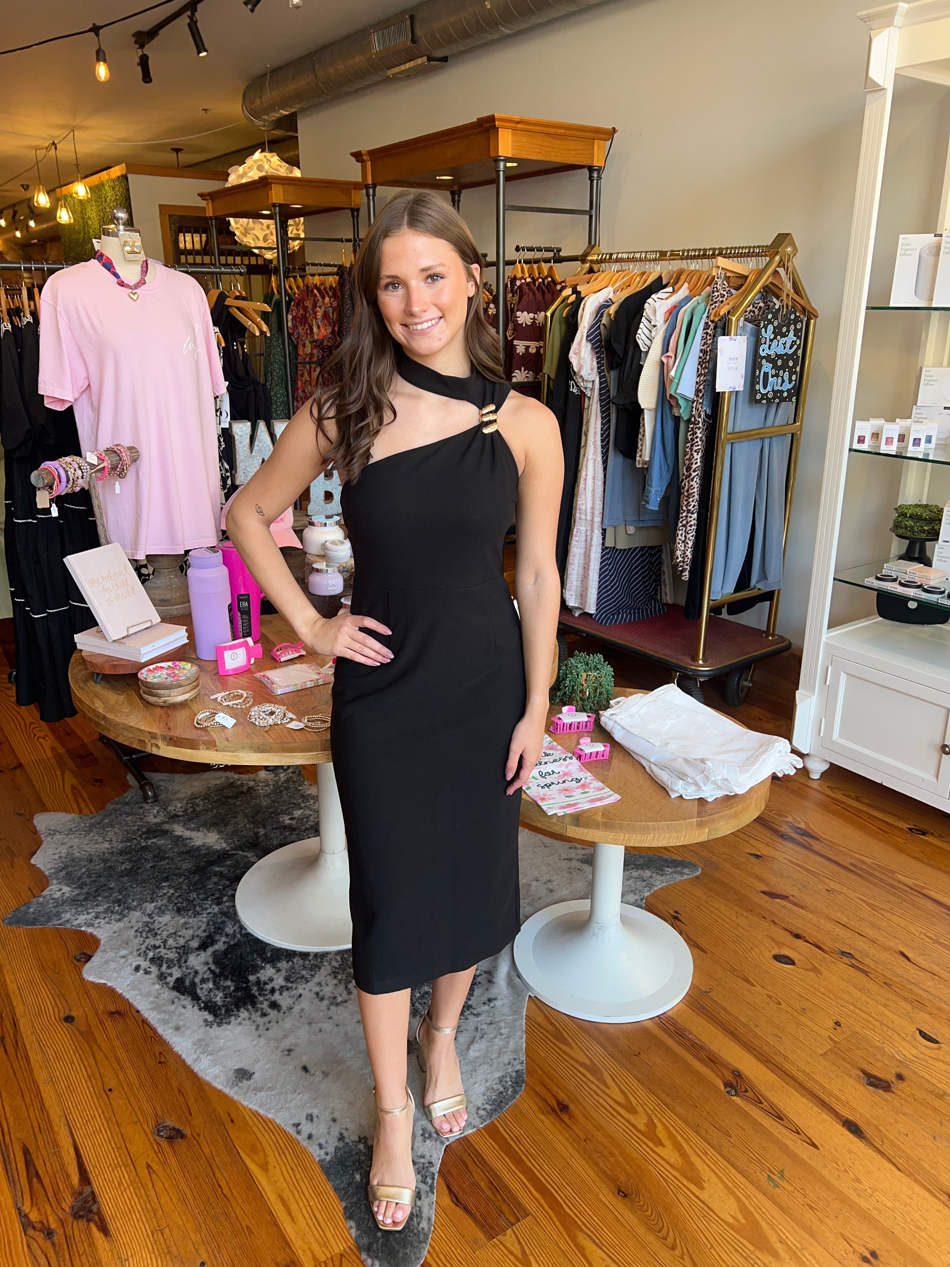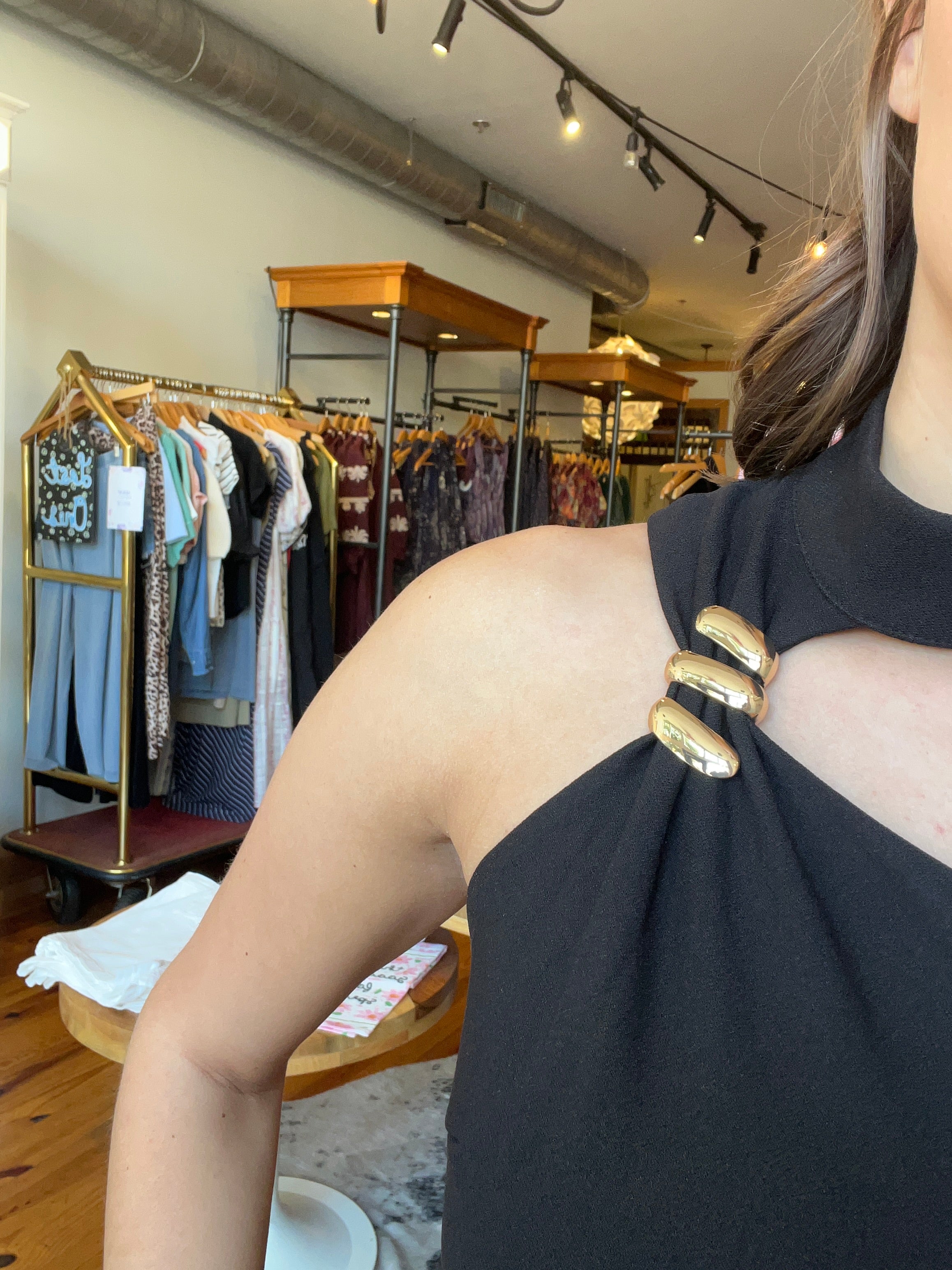 Ava is 5'7' wearing a small. Paired with our Daniella Block Heel Sandal- Gold.