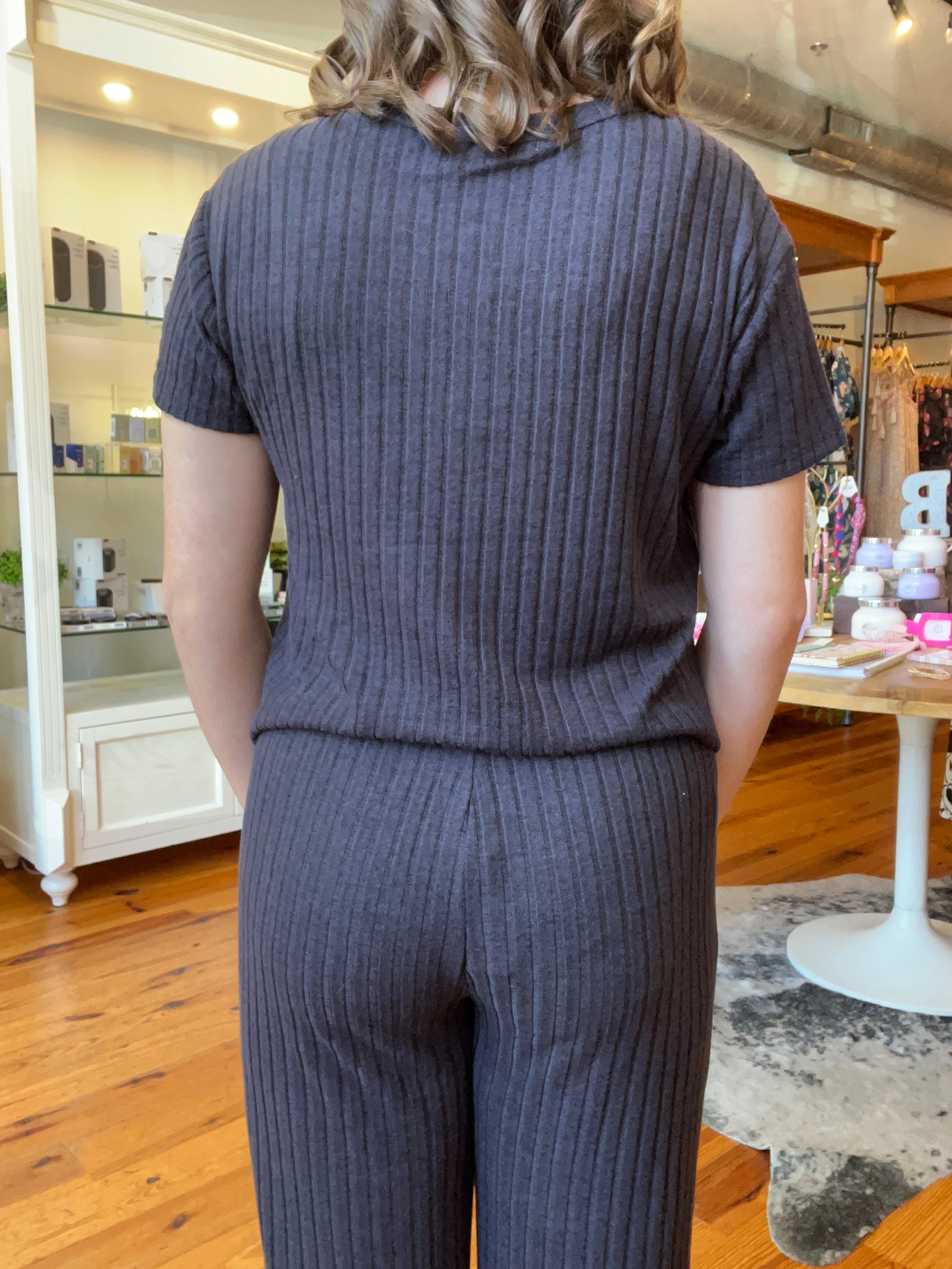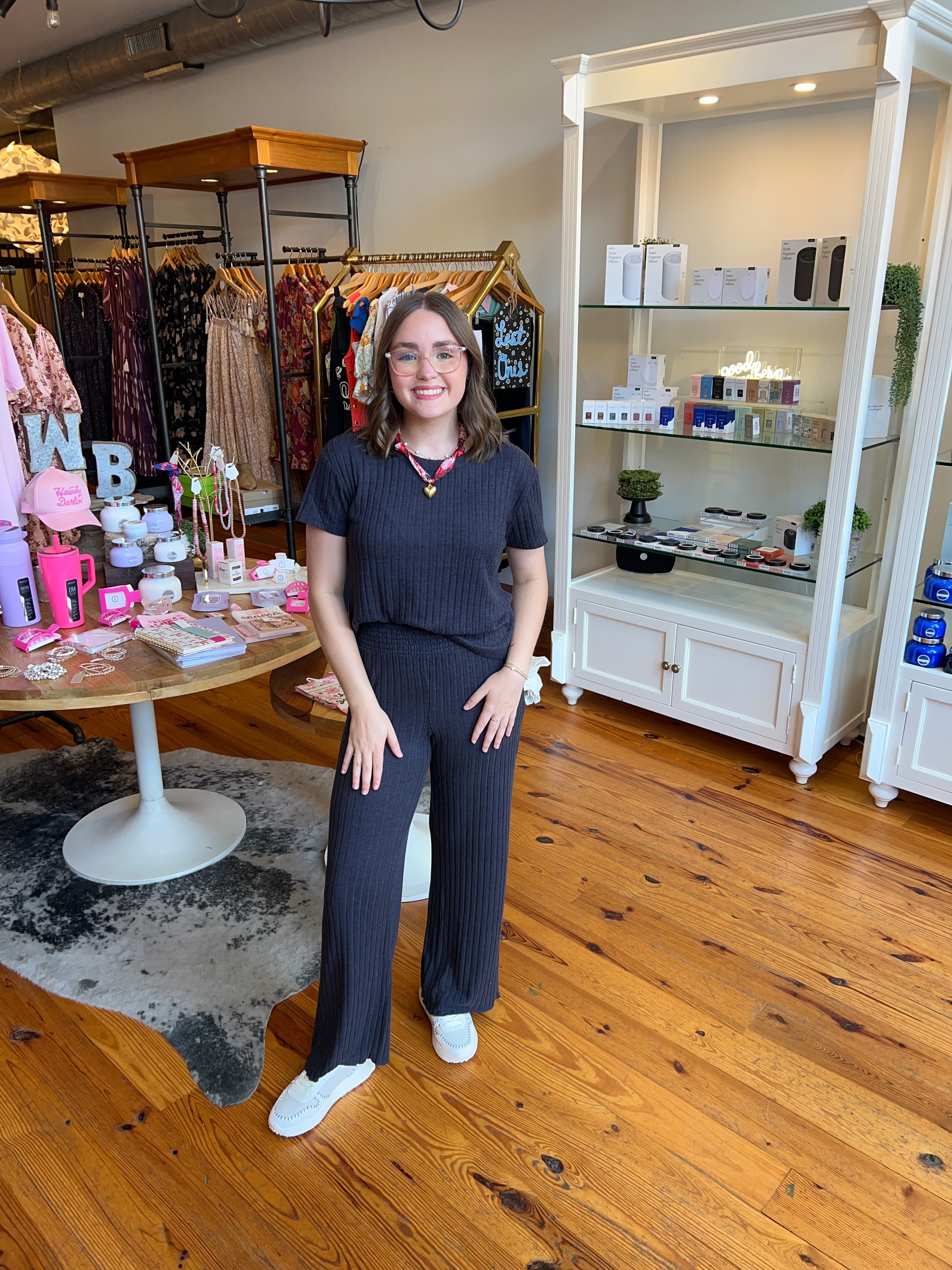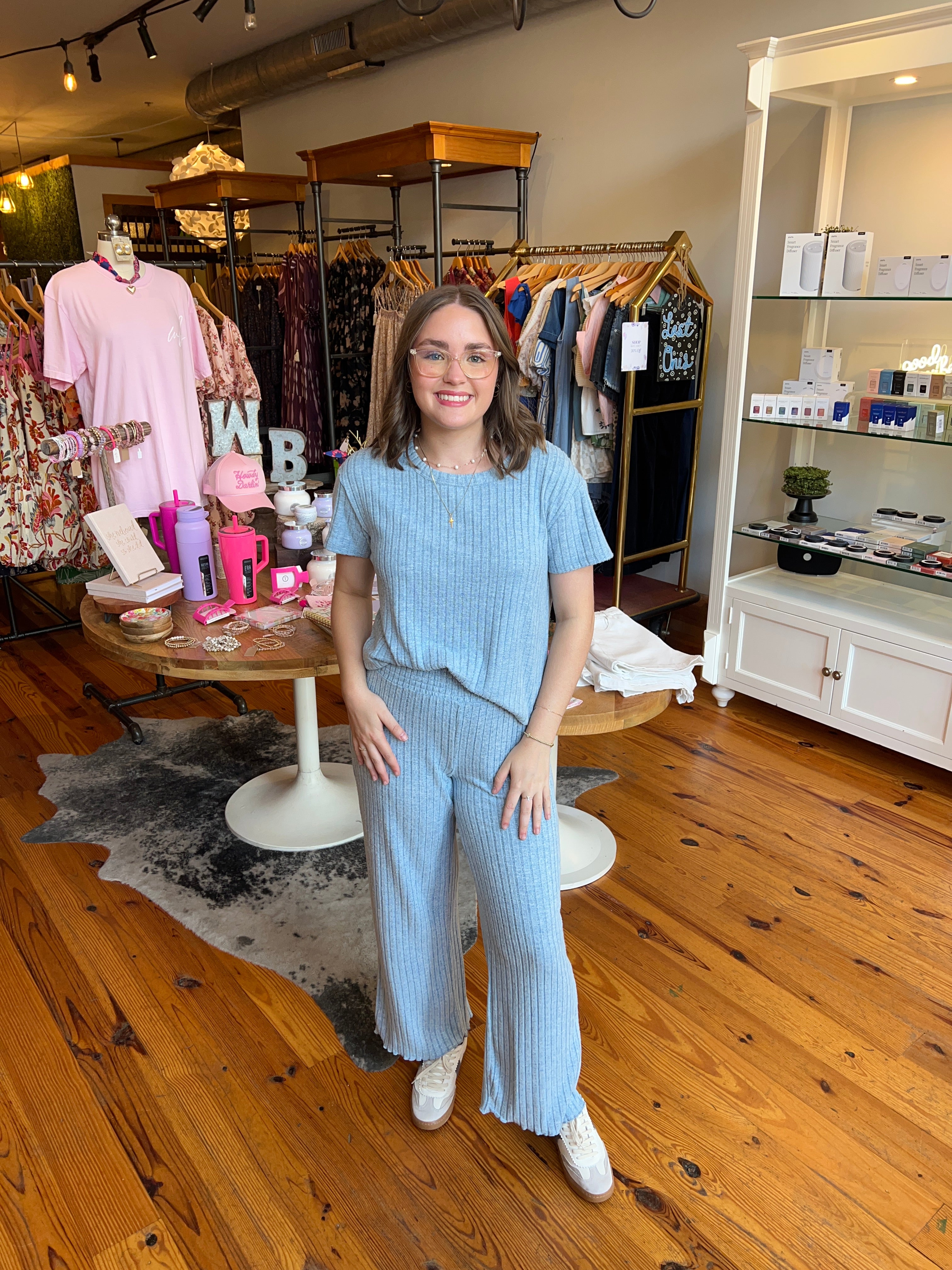 Grace is 5'3" wearing a small. Paired with our Dawn Smocked Rib Pant