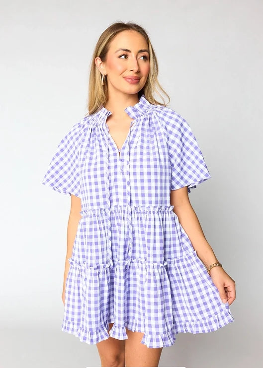 Lakin is here and she is turning heads! She features a baby doll fit that has an effortless oversized swing silhouette, an empire waist, fringed trim at neckline and hem, and a classic checkered pattern! Perfect for anything and everything, pair her with boots for a concert or wedges for a more brunch vibe!