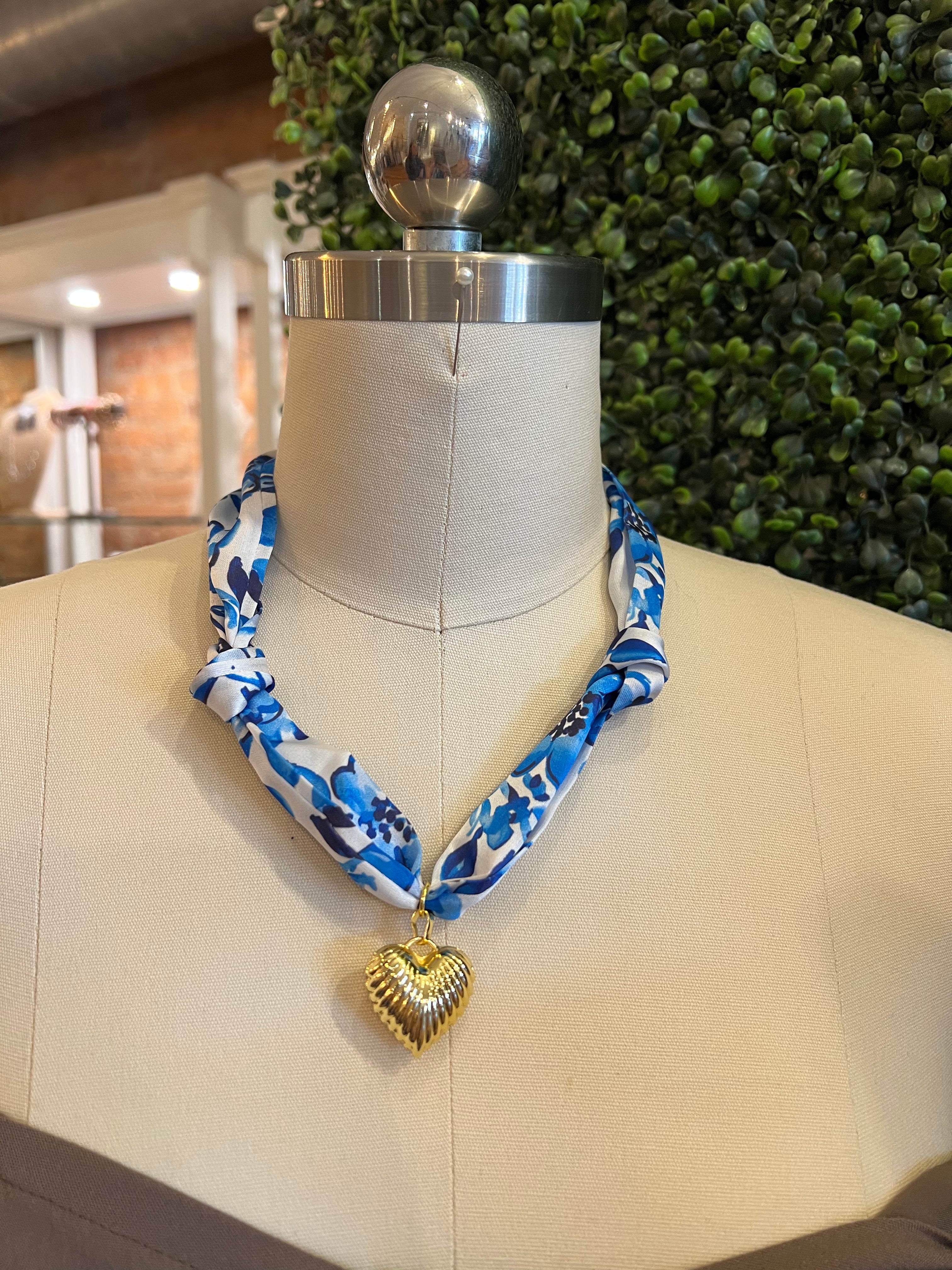 Elevate your look with the Serafina Scarf Charm Necklace. This satin-feel scarf is accented by a ribbed puff heart charm pendant, adding a playful yet chic touch. Designed with two stylish knots and a tie-back closure, it offers adjustable comfort and a perfect fit for any outfit.