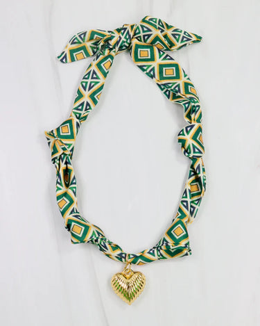 Elevate your look with the Serafina Scarf Charm Necklace. This satin-feel scarf is accented by a ribbed puff heart charm pendant, adding a playful yet chic touch. Designed with two stylish knots and a tie-back closure, it offers adjustable comfort and a perfect fit for any outfit.