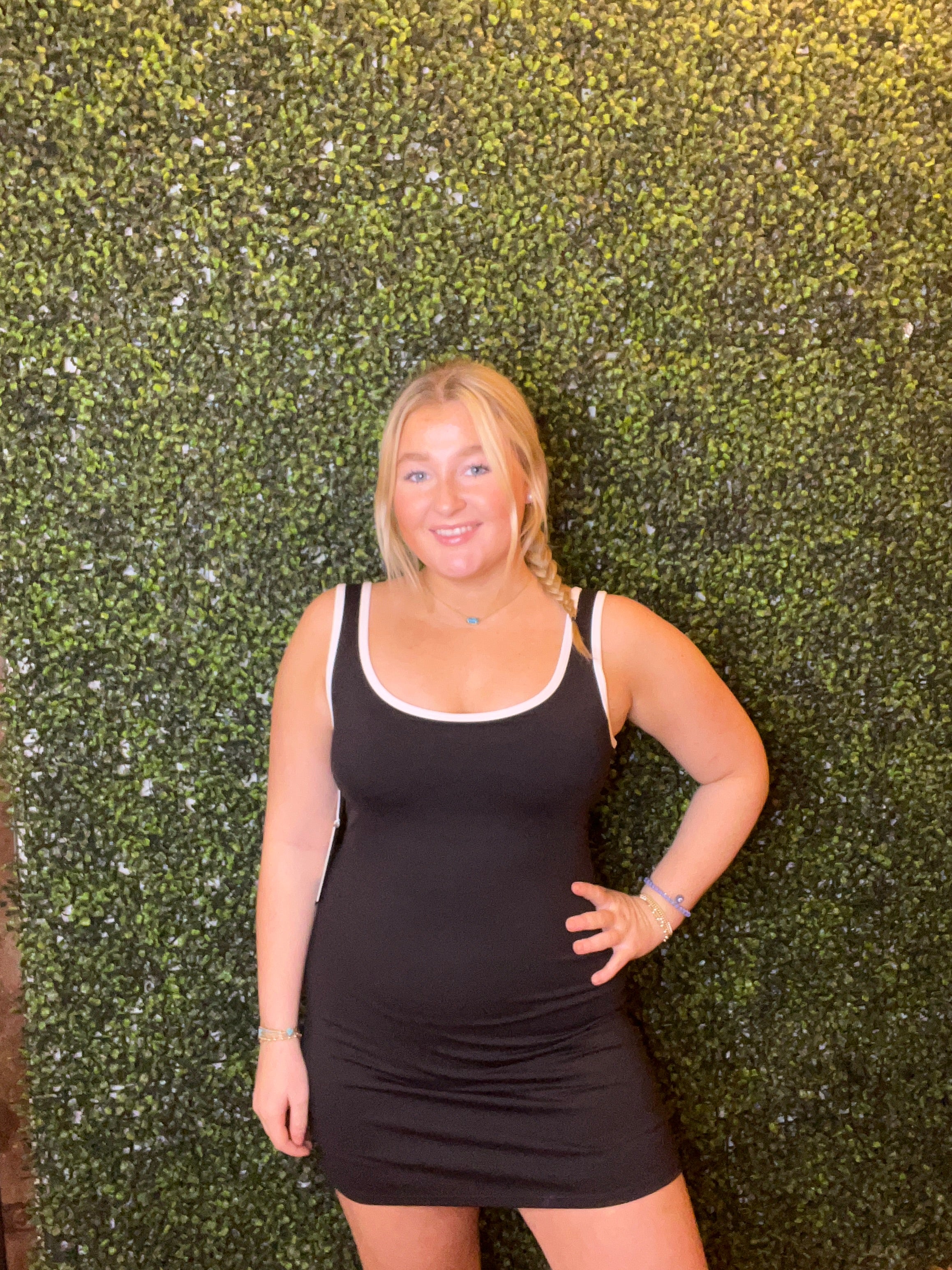 Engineered for movement, this mini dress combines a fitted interior onesie with bike shorts and ball and card pockets for added versatility. With removable cups and moisture-wicking Pure Performance fabric, it’s designed to support you through any activity.