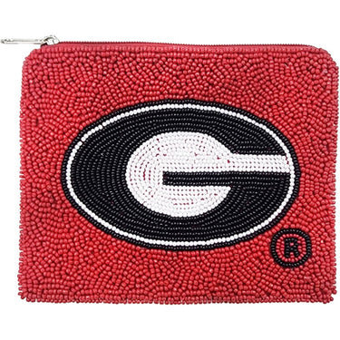 Show your Bulldog pride with this handcrafted University of Georgia Red and Black Beaded Coin Pouch. Featuring intricate beadwork in the school’s signature red, black, and white colors, this pouch proudly displays the iconic Georgia “G” logo. Measuring 5.5 inches in length and 4.5 inches in height, this zippered pouch is perfect for carrying your small essentials like coins, cards, and keys.