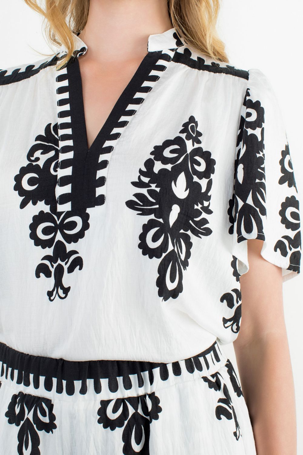 - WOVEN / 83% Rayon, 17% Nylon