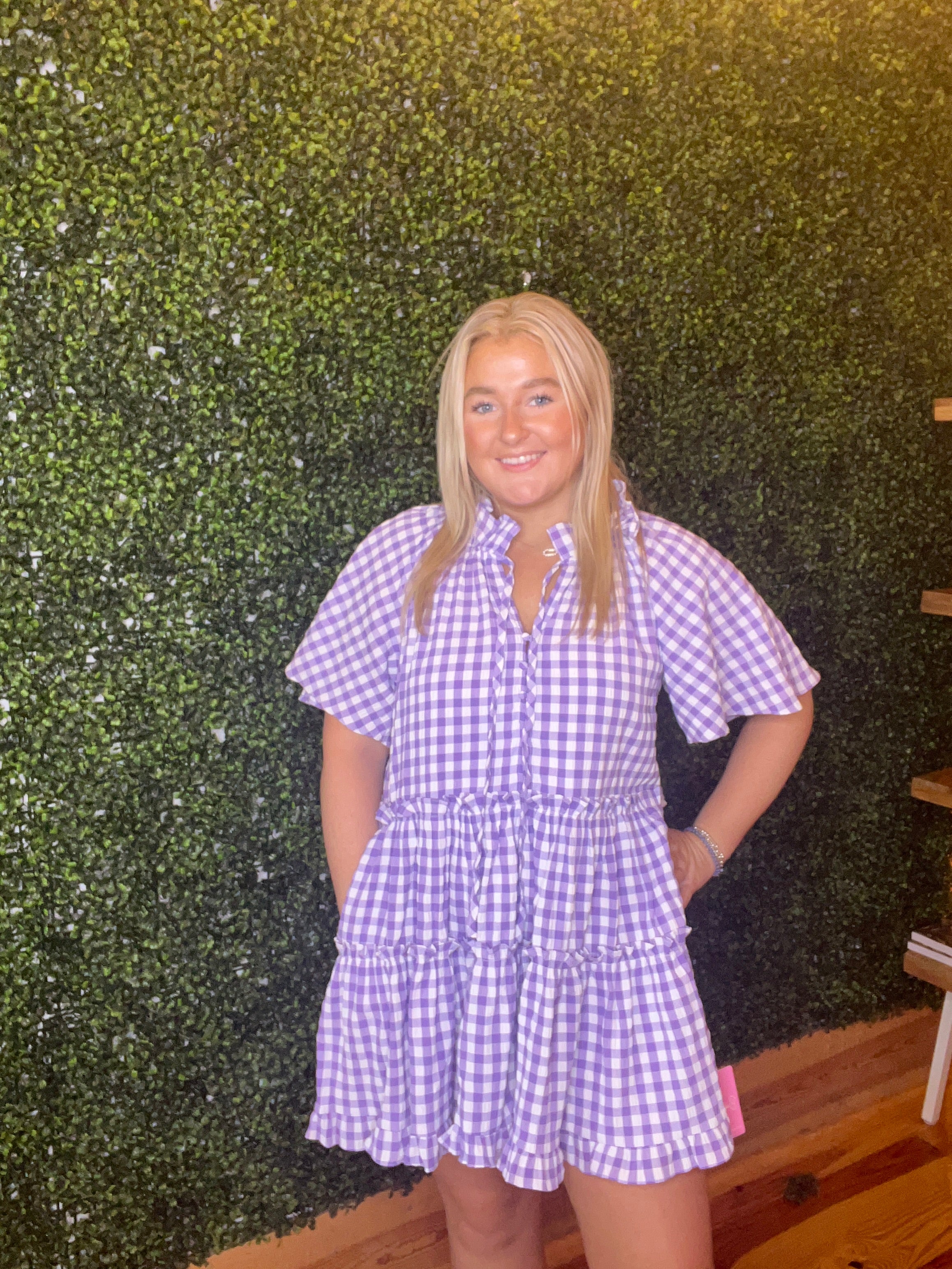 Lakin is here and she is turning heads! She features a baby doll fit that has an effortless oversized swing silhouette, an empire waist, fringed trim at neckline and hem, and a classic checkered pattern! Perfect for anything and everything, pair her with boots for a concert or wedges for a more brunch vibe!