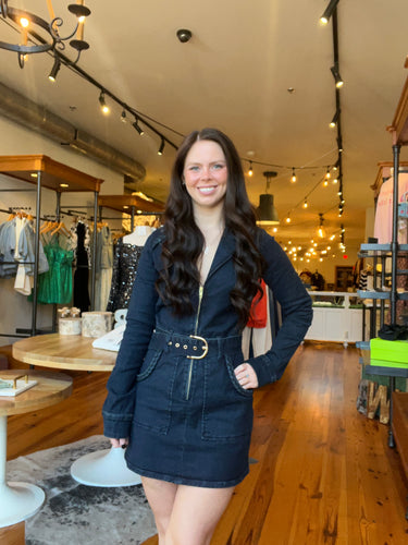 Your fave Outlaw Dress received an upgrade! This denim mini breaks all the rules. She zips all the way down the front so you decide how much of Mu you want to show! She has a fitted waist, big cargo-ish pockets, and is collared at the top. Get ready to strut your stuff in this long sleeve Outlaw mini.