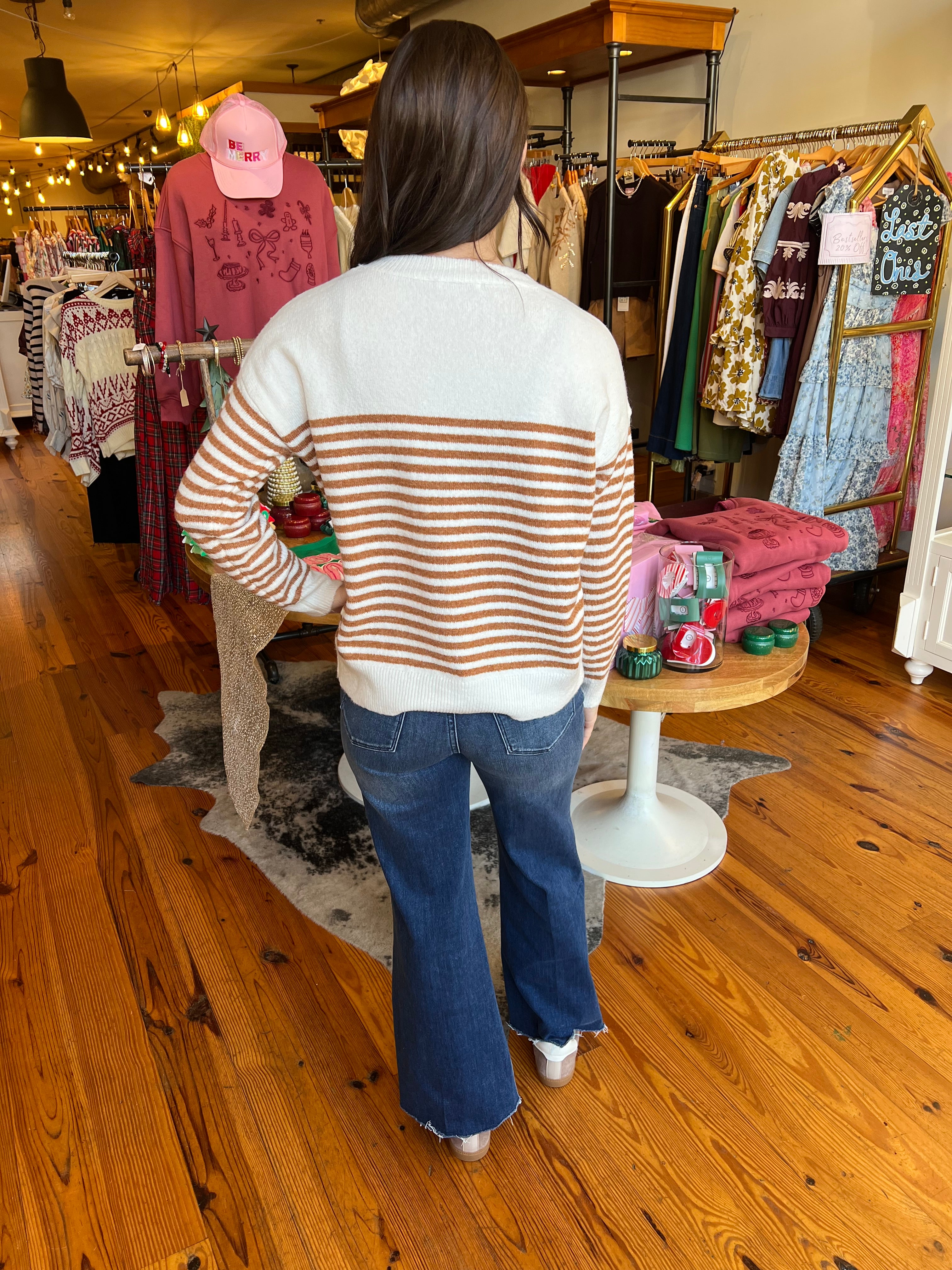 CHEST POCKET, CREW NECK, LONG SLEEVE, SUPER SOFT, STRIPE BLOCKED SWEATER