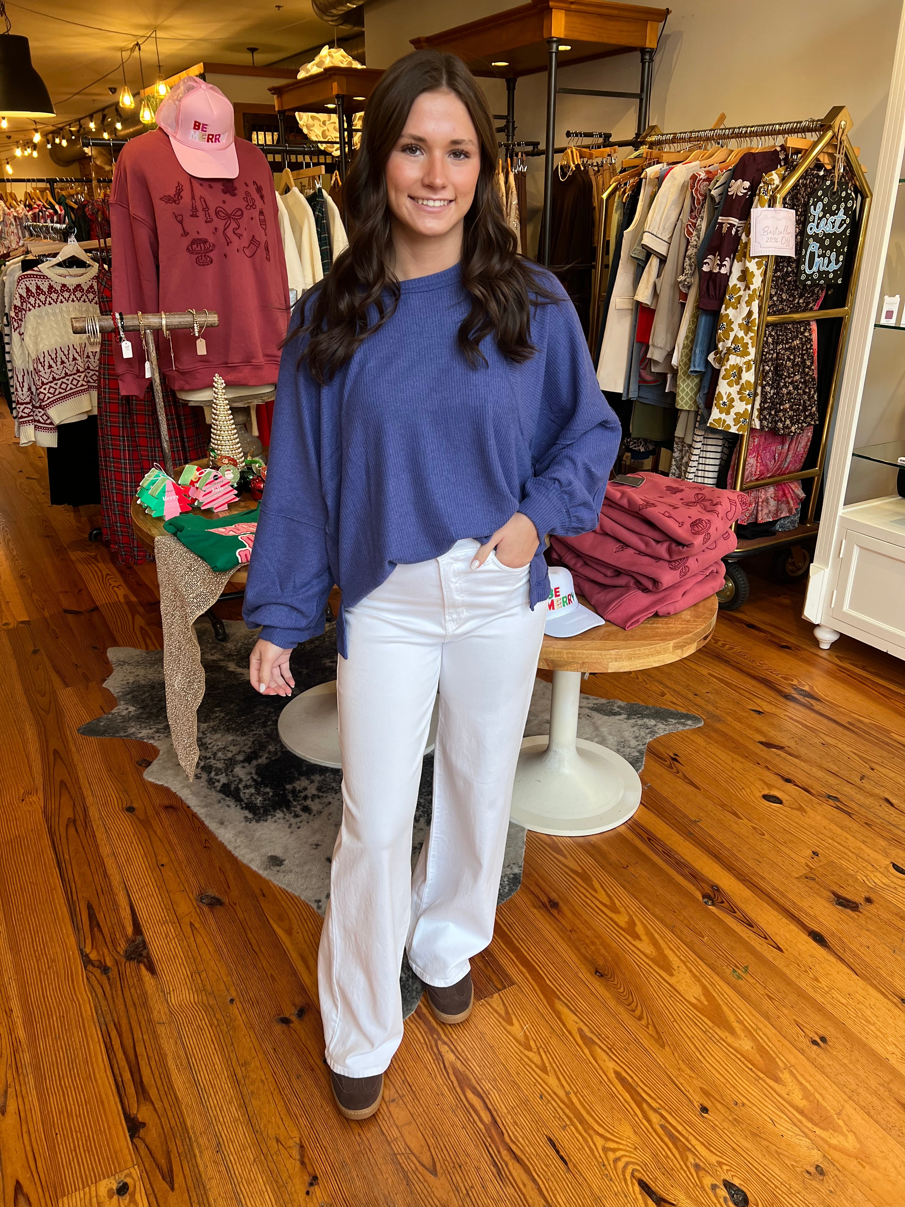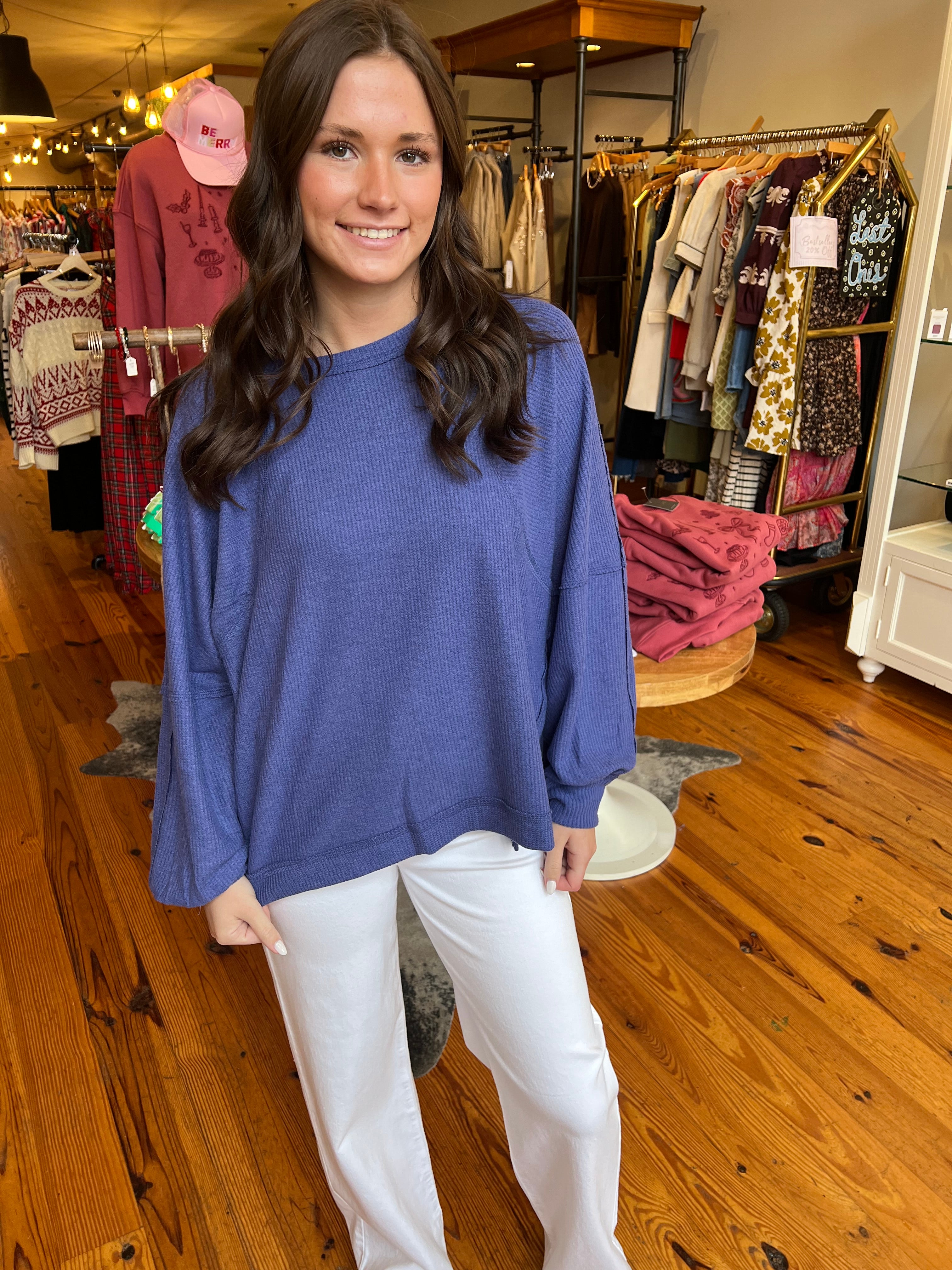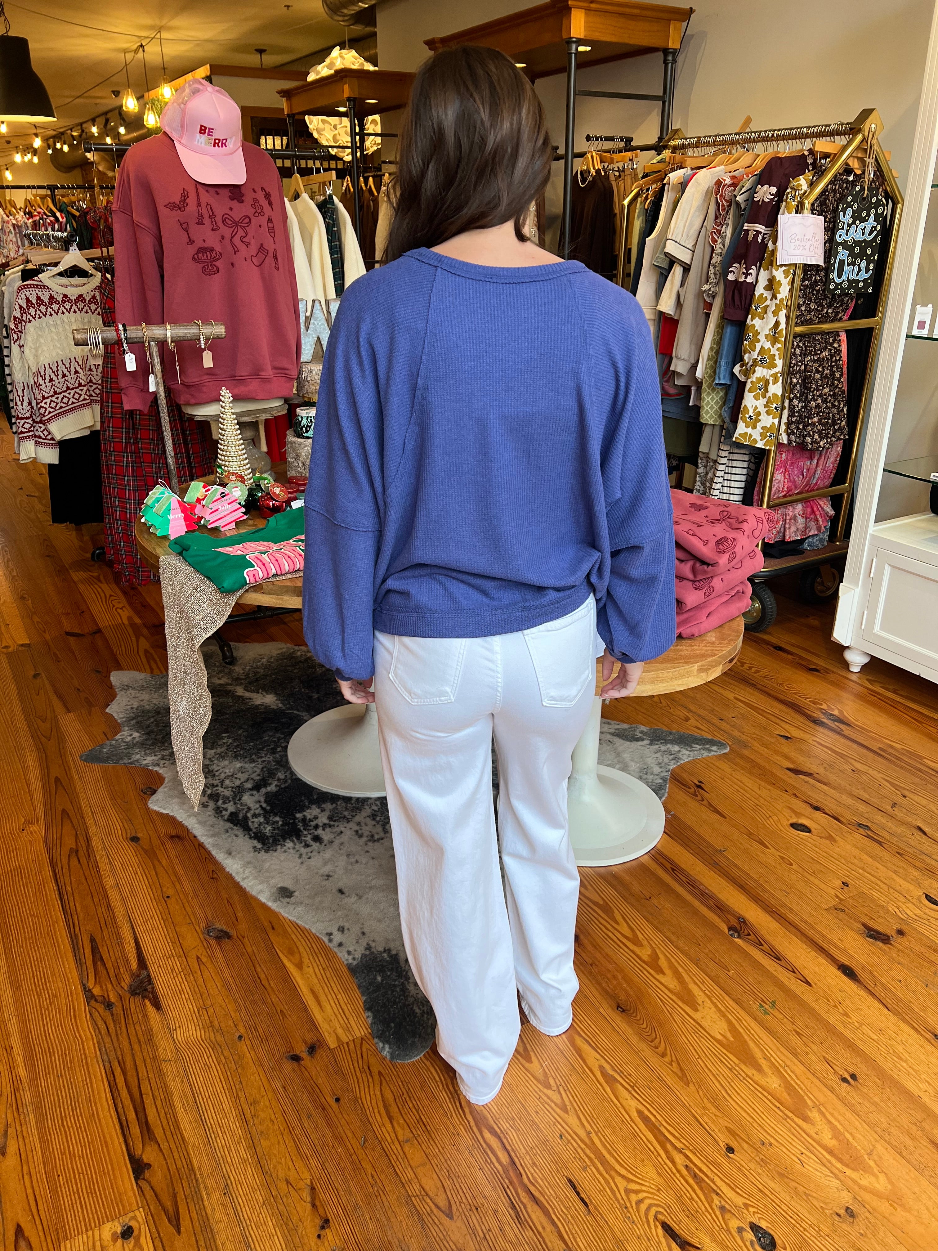Experience cozy sophistication with this brushed waffle top, perfect for effortlessly chic comfort. Its soft texture ensures easy wearability, while the loose silhouette and elongated sleeves offer a relaxed fit. Ideal for stylish layering, pair this top with fitted jeans or leggings and a statement necklace for a casual brunch or a relaxed evening out.