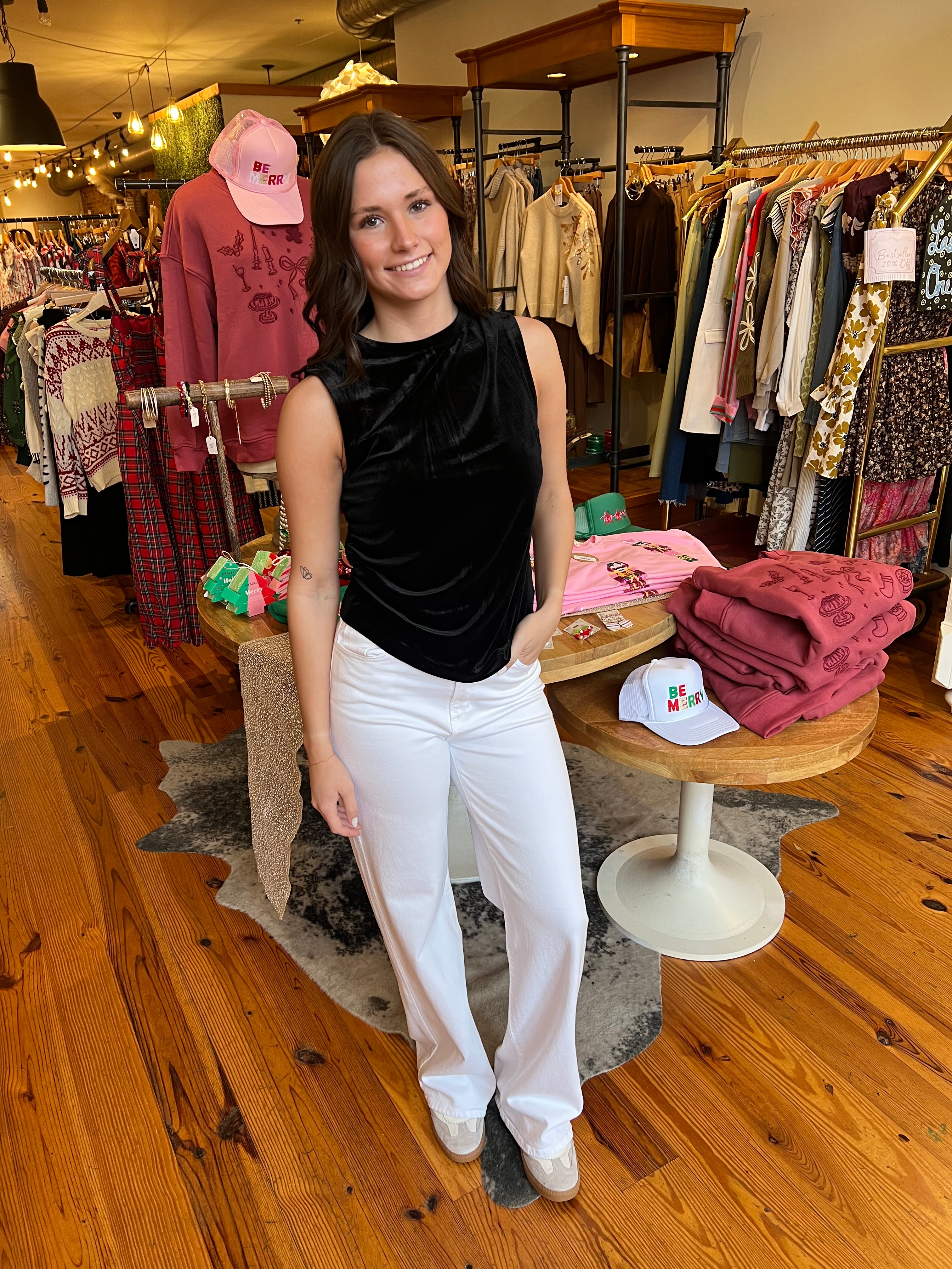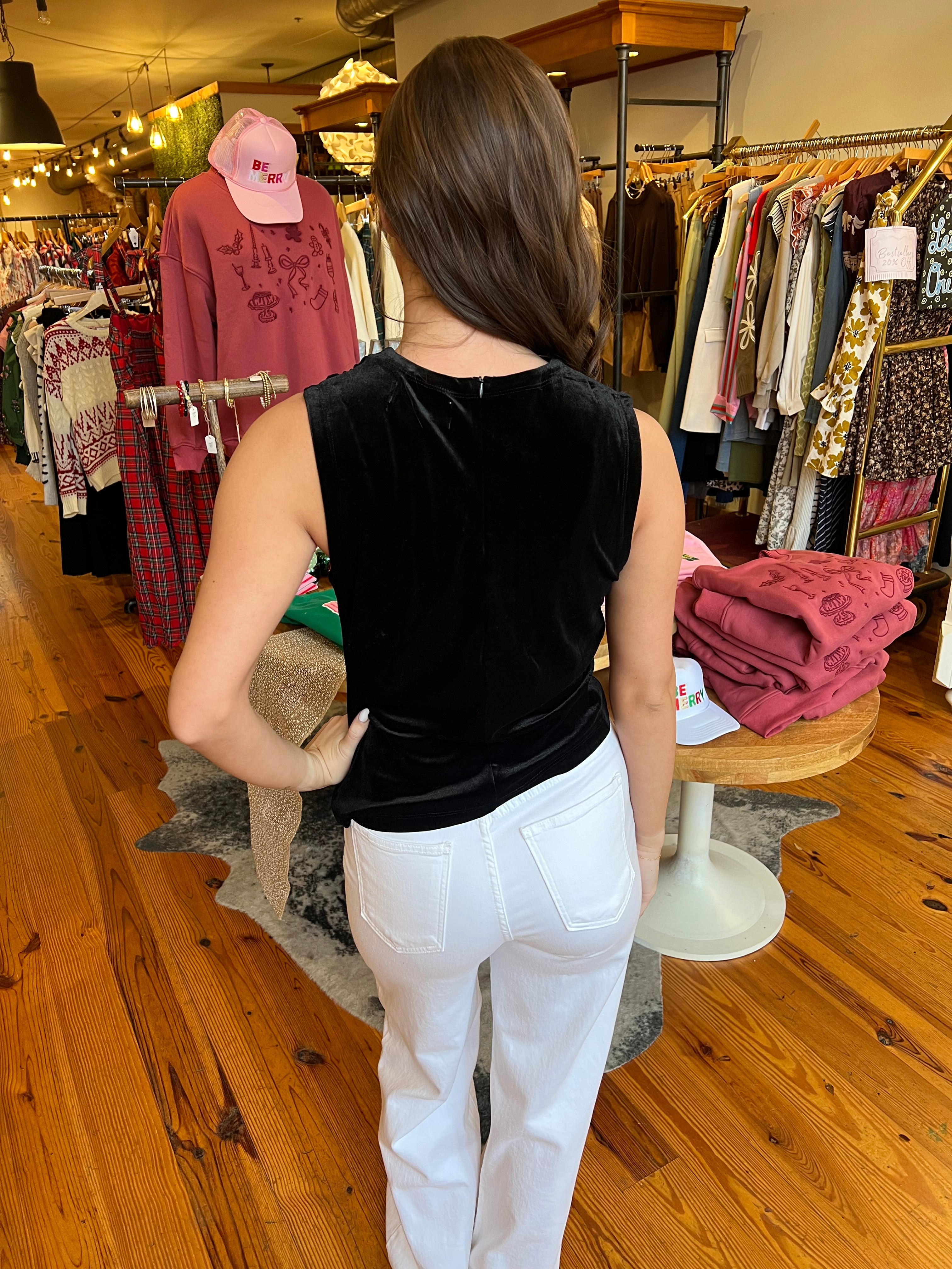 This velvet piece is provides both elegance and comfort, pair with your favorite bottoms for a chic and effortless look.