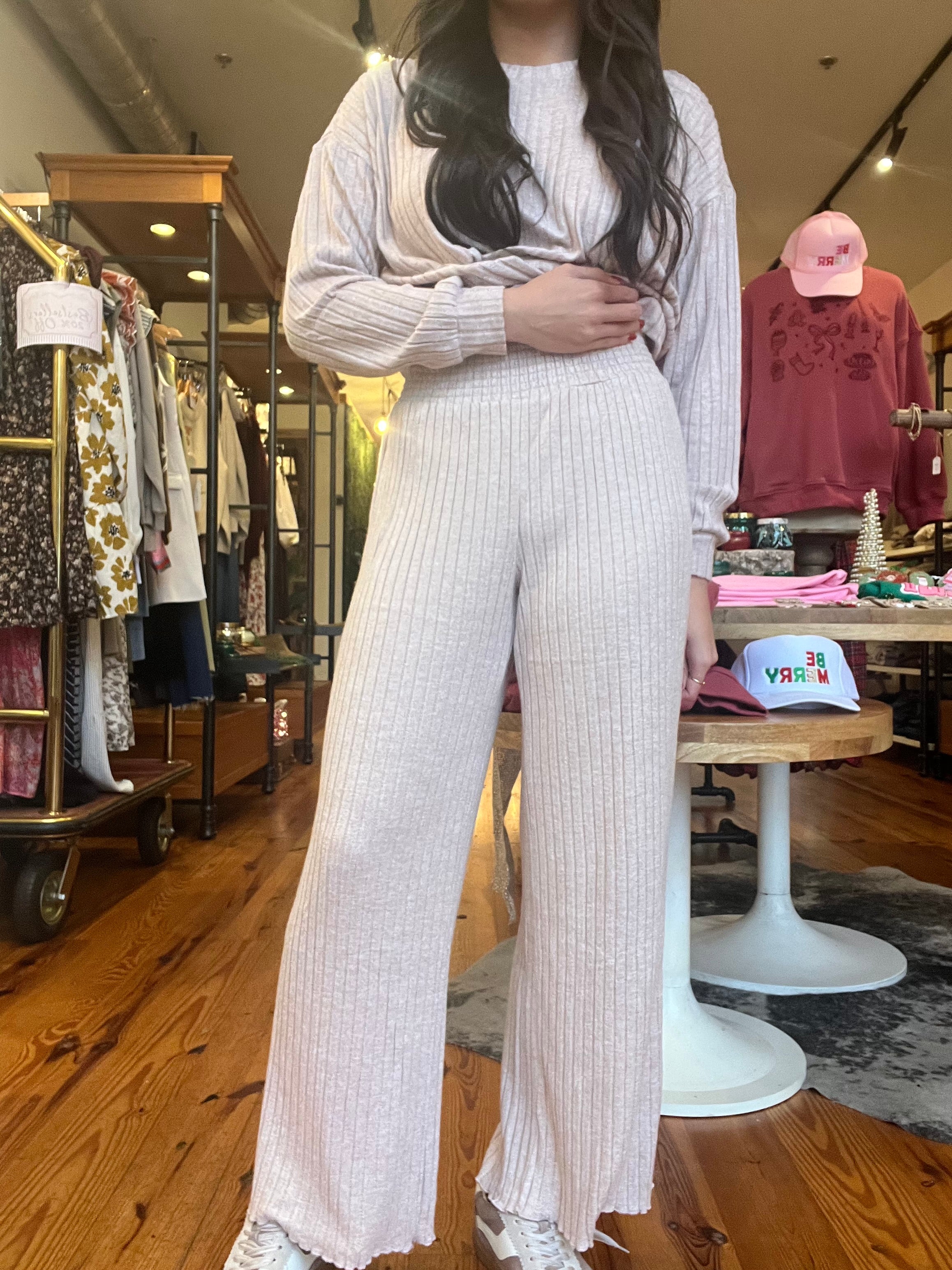 These ribbed pants combine a smocked waistband with a timeless fit-and-flare design. The fabric’s gentle stretch keeps them feeling comfortable all day long.