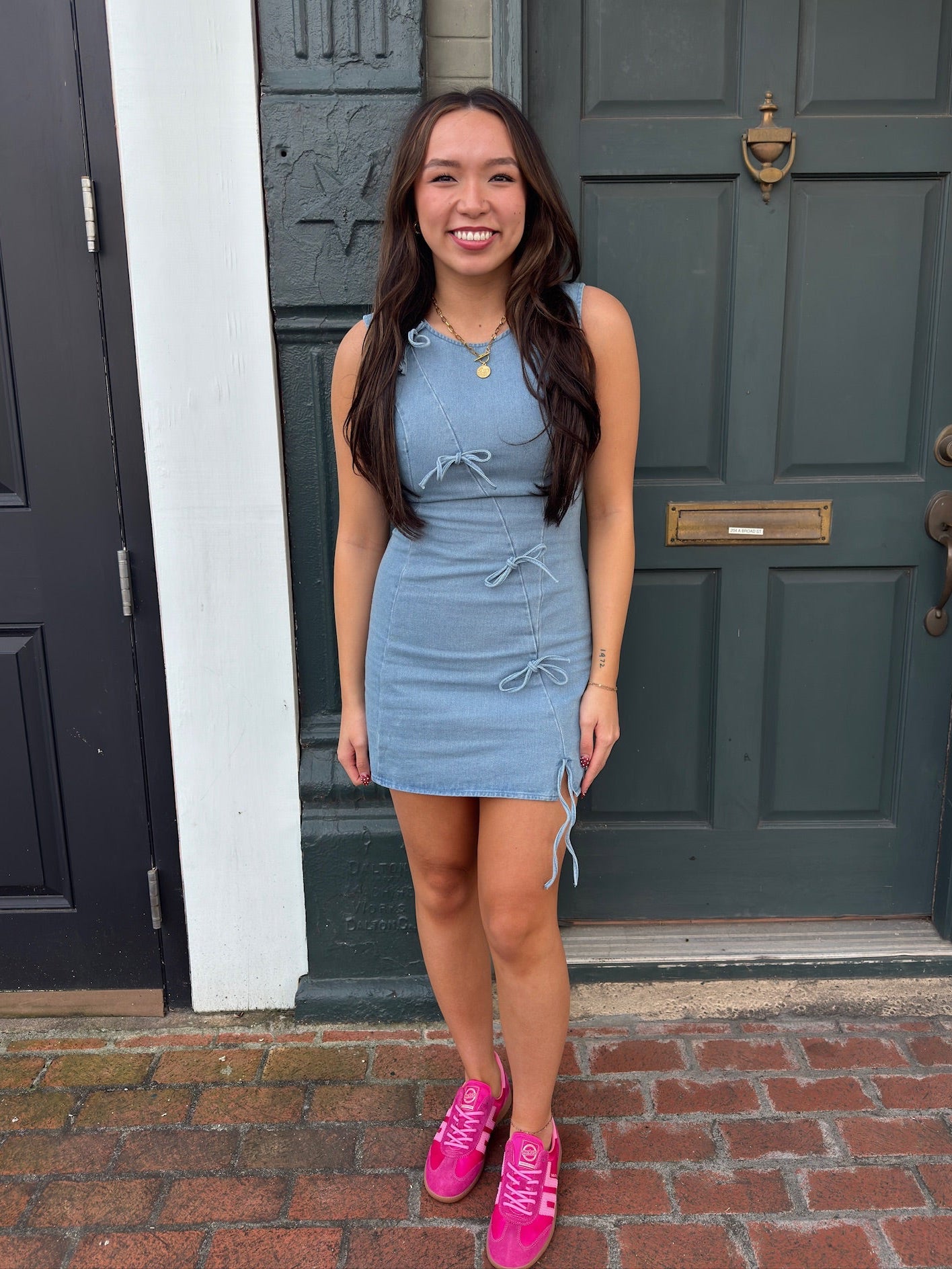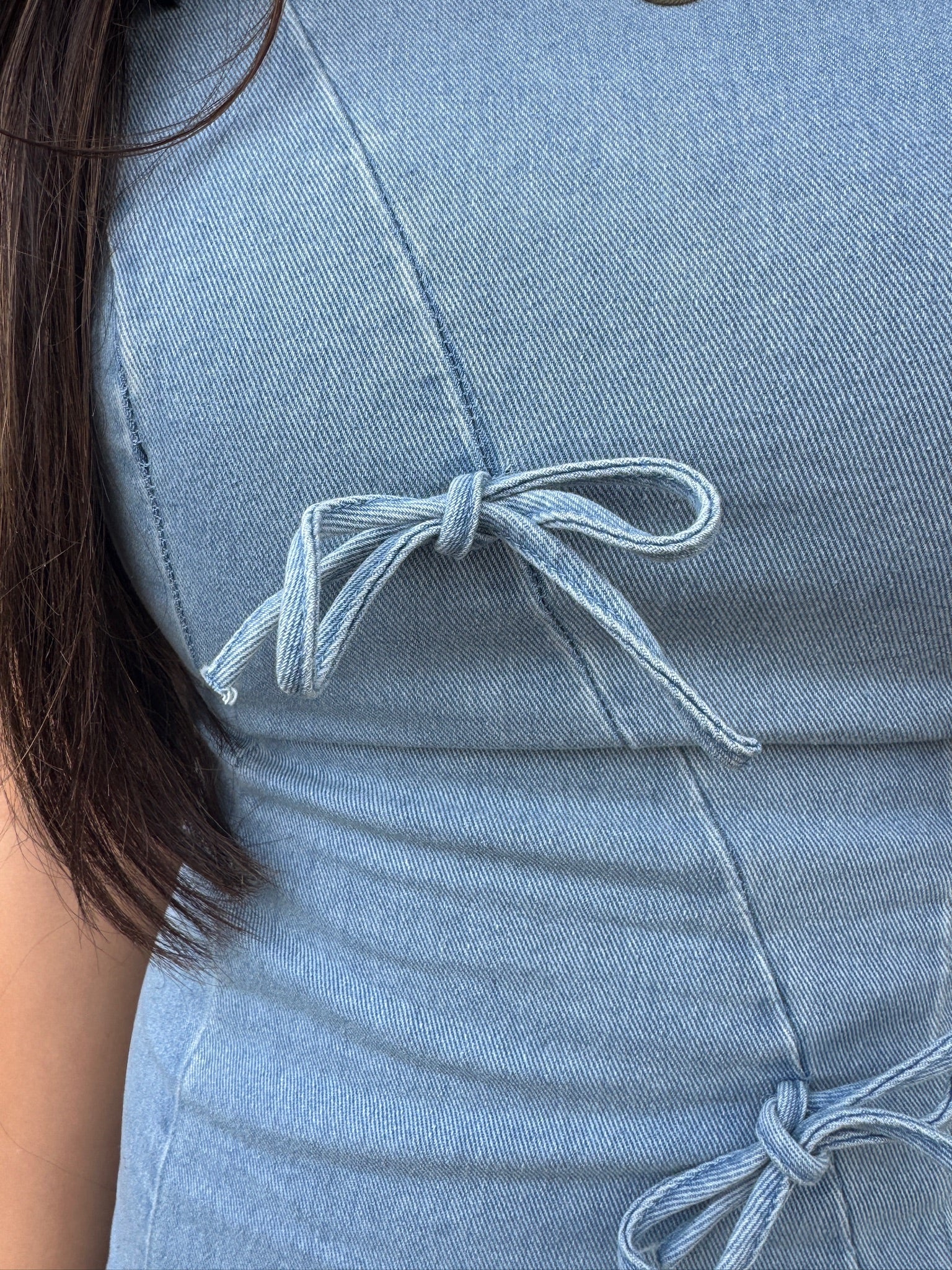 Denim Sleeveless Dress With Bow Tie Details