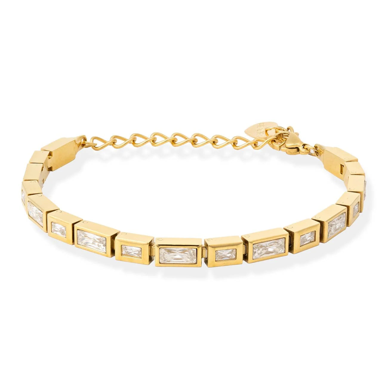 Sleek and modern add a class touch to any outfit and wrist stack. Made with water-resistant material and adorned with sparkly baguettes. Elevate your style with the Brielle Baguette Bracelet.