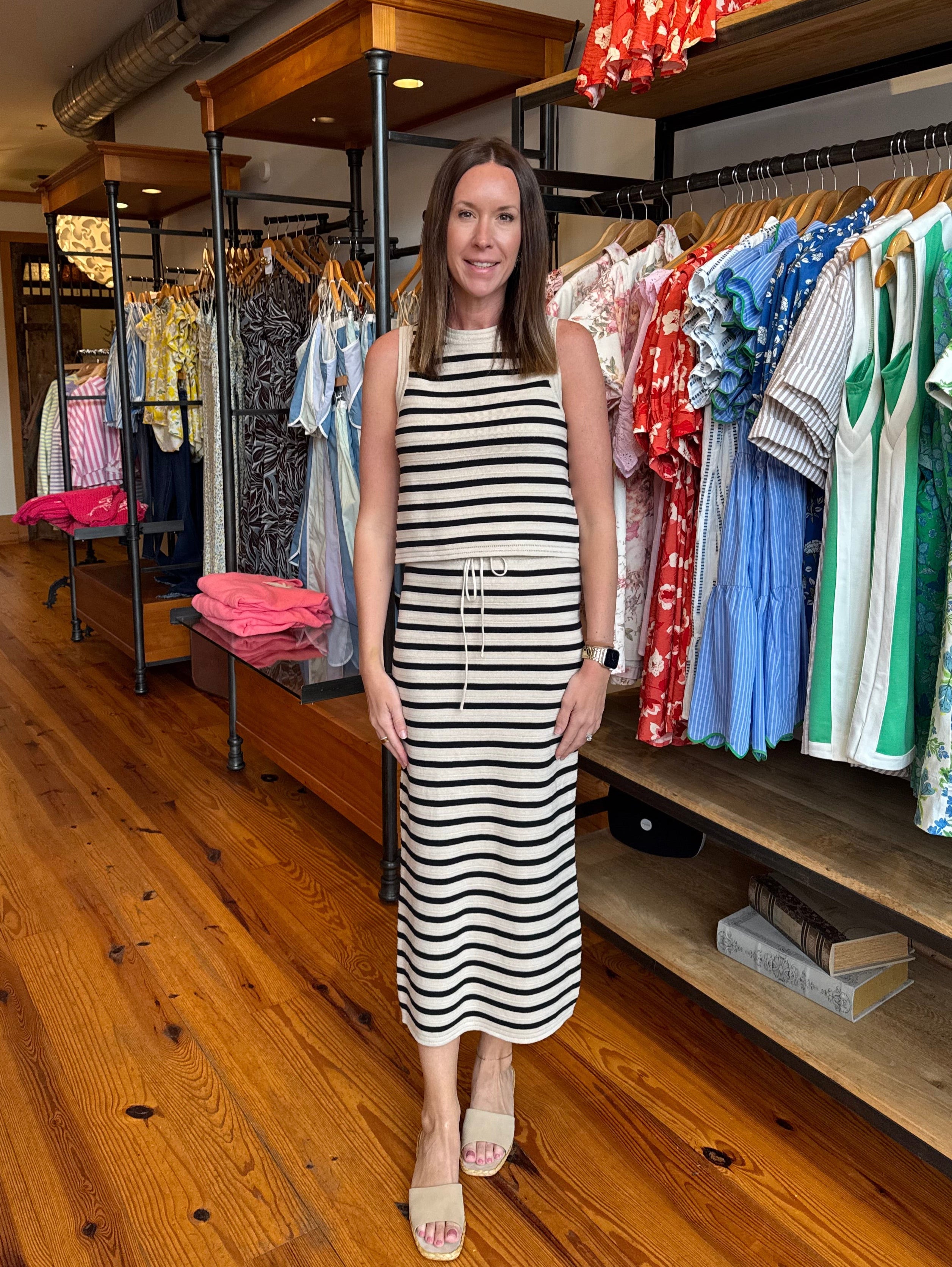 This crewneck tank makes getting dressed a breeze. The cool stripe and textured fabric make it versatile. We love it paired with its matching skirt for a complete look.