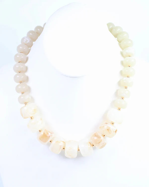 Make a bold statement with the Milford Chunky Bead Necklace. This necklace adds a fashionable and fun twist to any neutral outfit.