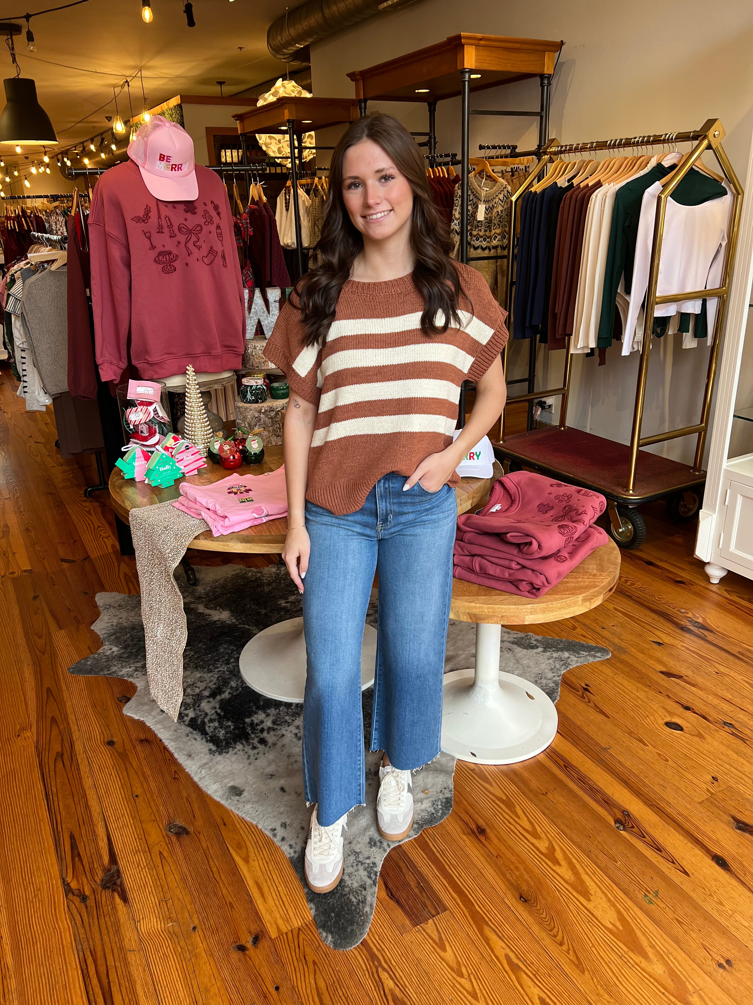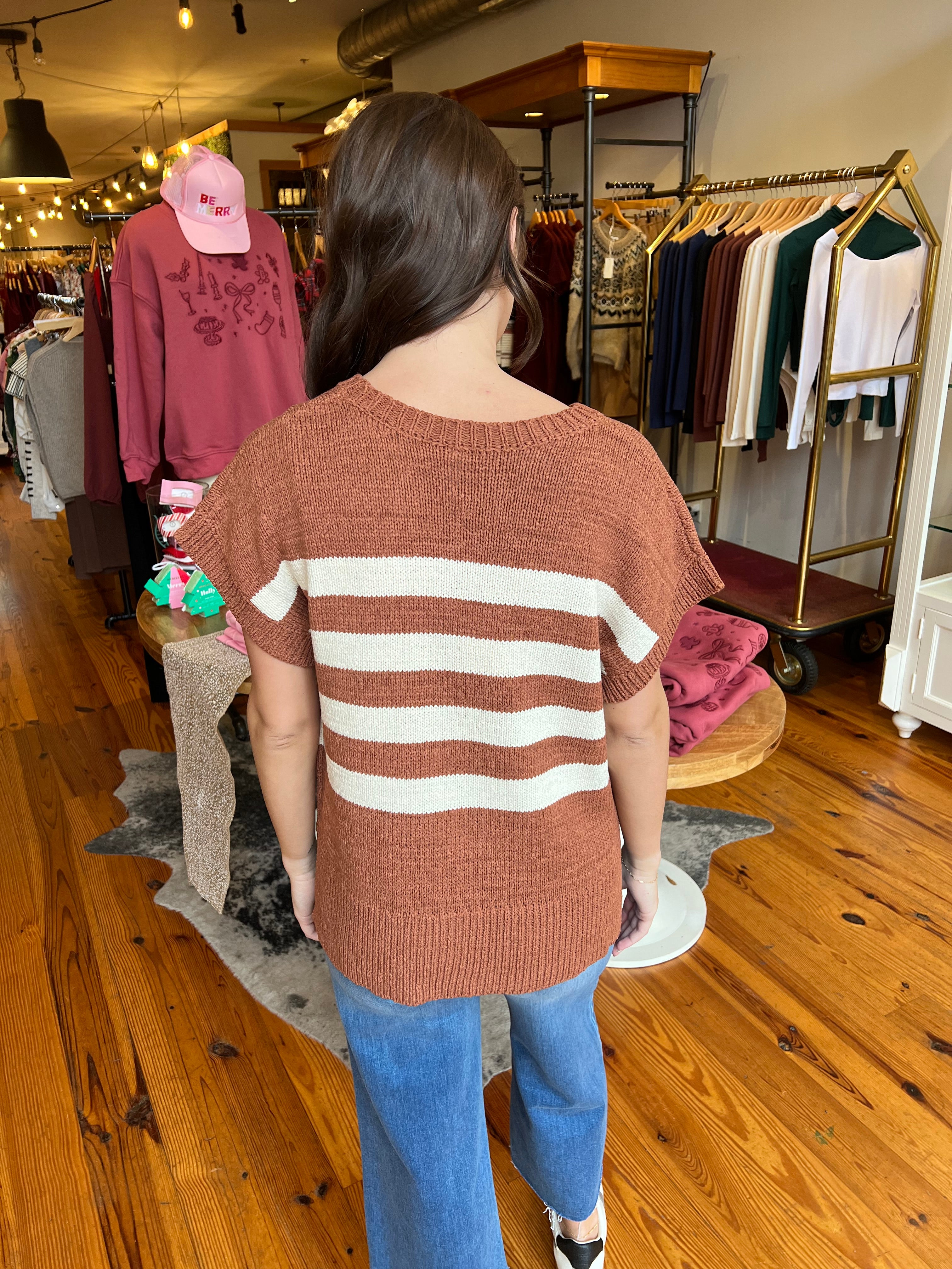 STRIPED DROP SHOULDER SWEATER TOP
