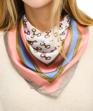 Multi horsebit print silky bandana scarf