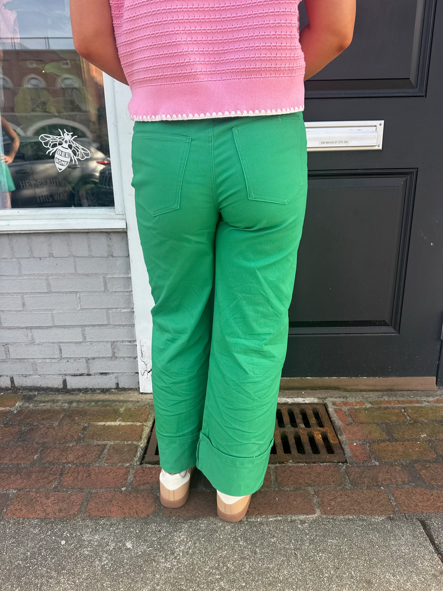 Solid mid-rise ankle length pants featuring zip-fly button closure and classic jean pockets. Unlined. Woven. Non-sheer. Lightweight.